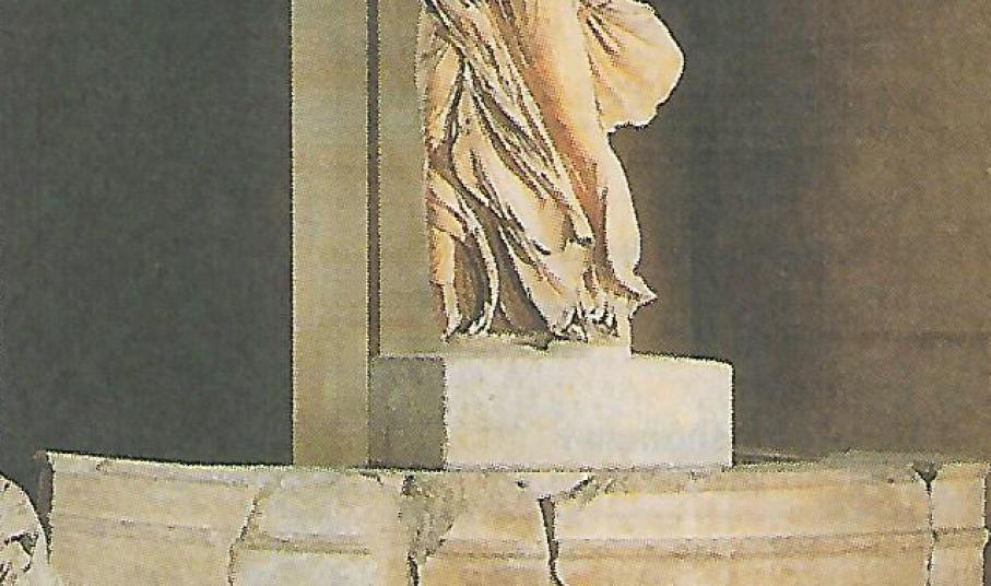 “Η πεντάμορφη κυρία του Λούβρου, το καμάρι του Μουσείου της Γαλλίας που εντυπωσιάζει και γοητεύει τους επισκέπτες, πήγε στο Λούβρο το 1879. Το συνόδευσαν Γάλλοι αρχαιολόγοι οι οποίοι και φρόντισαν την αποκατάσταση του αγάλματος που είχε βρεθεί σε δυο κομμάτια. Αποκομμένο ήταν και το ένα φτερό της. Το 1884 τοποθετήθηκε στην εσωτερική σκάλα του Μουσείου που παραμένει έως σήμερα. Είναι το πρώτο αρχαιολογικό εύρημα που βλέπουν και θαυμάζουν εκατομμύρια επισκεπτών στο Μουσείο της Γαλλίας.
