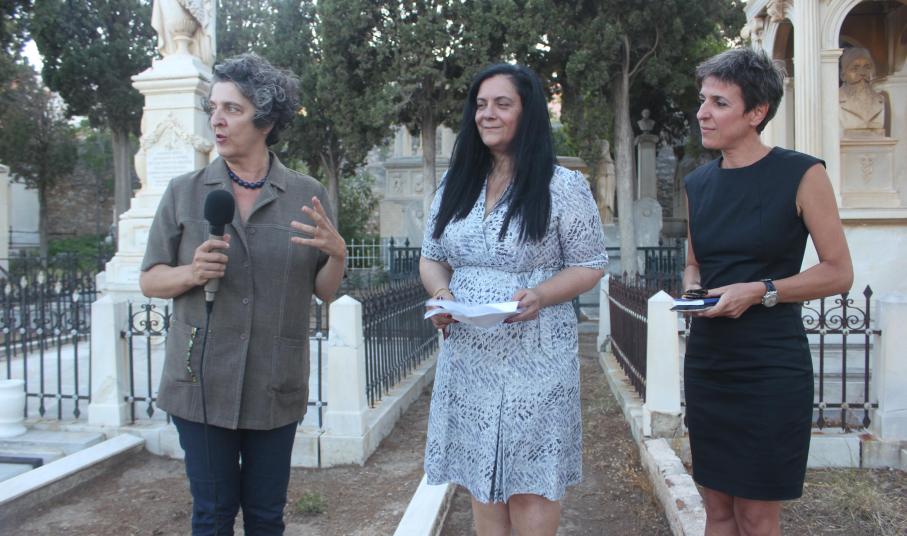 Η εντεταλμένη δημοτική σύμβουλος για το θέμα των Ταφικών Μνημείων, Μαρίζα Αγγελοπούλου ανακοίνωσε το όραμα και τα σχέδιά της, πλαισιωμένη από την Προϊσταμένη του Τμήματος Διεθνών Σχέσεων και Ευρωπαϊκής Ένωσης της ομώνυμης Διεύθυνσης του Υπουργείου Πολιτισμού, Μαριάνθη Αναστασιάδου και την Αρχαιολόγο Τζένη Γεωργάκη, Διδάκτορα Ιστορίας και Θεωρίας της Διατήρησης και Αποκατάστασης Μνημείων Πολιτισμού στο Αριστοτέλειο Πανεπιστήμιο Θεσσαλονίκης.