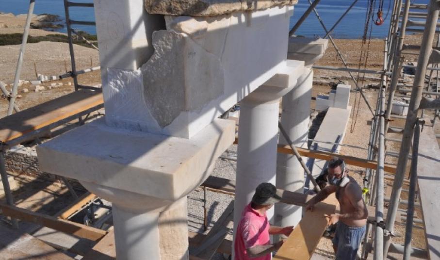 Αναστήλωση-συντήρηση: Οι αναστηλωτικές εργασίες διήρκησαν 4 εβδομάδες και στέφθηκαν με απόλυτη επιτυχία, αφού μετά την τοποθέτηση και του τρίτου κίονα του ναού και του επιστυλίου πάνω από αυτόν το μνημείο έχει αποκτήσει ξανά την τρίτη διάστασή του και ο επισκέπτης μπορεί να αντιληφθεί το μέγεθος και το μεγαλείο του ακόμα και από την απέναντι ακτή της Αντιπάρου.