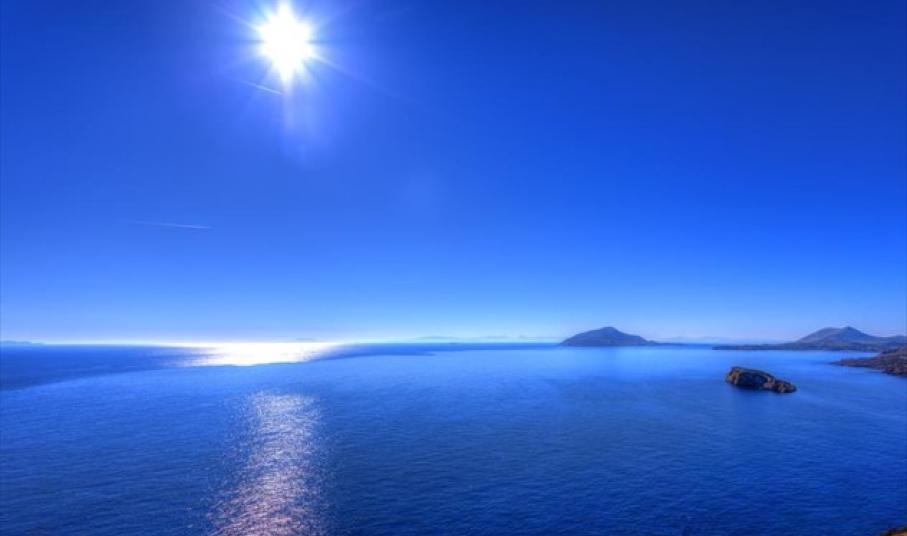 Αιγαίο μου, γιατί σε ονόμασαν Αιγαίο; Απ' τον Αιγέα, της Αθήνας βασιλιά, πατέρα του Θησέα, που πνίγηκε μες τα νερά σου από το βαθύ πόνο γιατί είδε τα καράβια, νάρχονται με μαύρα πανιά από την Κρήτη. Είχε ξεχάσει ο Θησέας να αλλάξει και να βάλει τα άσπρα πανιά (όπως είχαν συμφωνήσει με τον Αιγέα, αν είχαν σκοτώσει το Μινώταυρο στην Κρήτη). Και τότε η πανέμορφη αυτή θάλασσα πήρε το όνομα του βασιλιά Αιγέα και έως σήμερα ζούμε πάνω στον αφρό αυτής της θάλασσας και κάτω από το υπέροχο φως του ήλιου. Και ο Ελύτης έγραψε: “Άξιον εστί το απέραντο γαλάζιο” και... “Ήλιος ο πρώτος” και “Ήλιος ο Ηλιάτορας” είναι οι τίτλοι ποιημάτων του που αναφέρονται στον Ήλιο του Αιγαίου.
