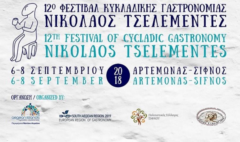 Για 12η χρονιά φέτος, στη Σίφνο, στη γενέτειρα του Νικόλαου Τσελεμεντέ, του «προκαθήμενου» της ελληνικής γαστρονομίας, πραγματοποιείται από τις 6 έως τις 8 Σεπτεμβρίου το «Φεστιβάλ Κυκλαδικής Γαστρονομίας Νικόλαος Τσελεμεντές».