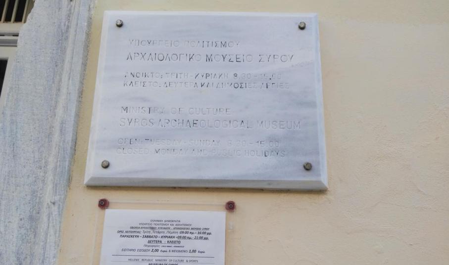 Μία άκρως σημαντική απόφαση έλαβε και υλοποίησε το Υπουργείο Πολιτισμού μέσω της Εφορείας Αρχαιοτήτων Κυκλάδων, προκειμένου να προσδιορίζει τον χώρο στον οποίο λειτουργεί το Αρχαιολογικό Μουσείο Ερμούπολης.