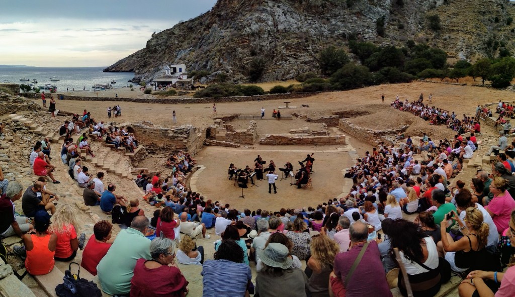 Με το τελευταίο φθινοπωρινό φως της μέρας, πλήθος κόσμου συνέρρευσε στο αρχαίο θέατρο και αποθέωσε την Καμεράτα που παρουσίασε έργα G. Puccini, W. A. Mozart, G. Holst, G. F. Händel και B. Bartók. Τη δεκαμελή ορχήστρα, υπό τη μουσική διεύθυνση του μαέστρου Γιώργου Παπαδόπουλου, συνόδεψε η σοπράνο Μυρσίνη Μαργαρίτη. Το κοινό μαγεύτηκε από τη Μικρή Νυχτερινή μουσική του Mozart και τους Ρουμάνικους χορούς του Μπάρτοκ και καταχειροκρότησε τη σοπράνο, τους εξαιρετικούς μουσικούς και τον σπουδαίο διευθυντή της ορχήστρας. Η Καμεράτα με αυτή τη μουσική παράσταση έφερε ξανά το κοινό σε αυτό το σπουδαίο αρχαίο θέατρο της Κέας, που στέκεται εκεί για να μας θυμίζει πόσο βαθιές στο χρόνο είναι οι ρίζες του πολιτισμού στη γη της Καρθαίας.