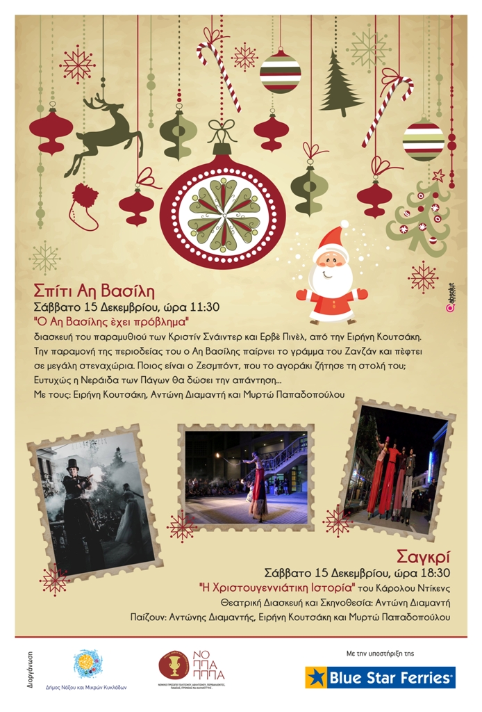 1. Σάββατο 15 Δεκεμβρίου, 11:30, στο Σπίτι του Αη Βασίλη (Λύκειο Νάξου)