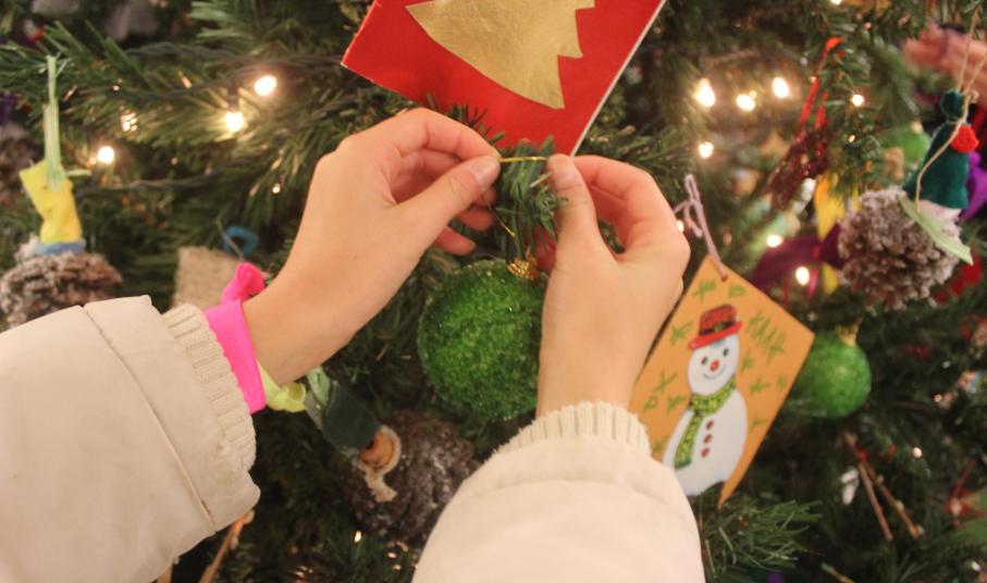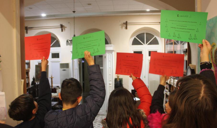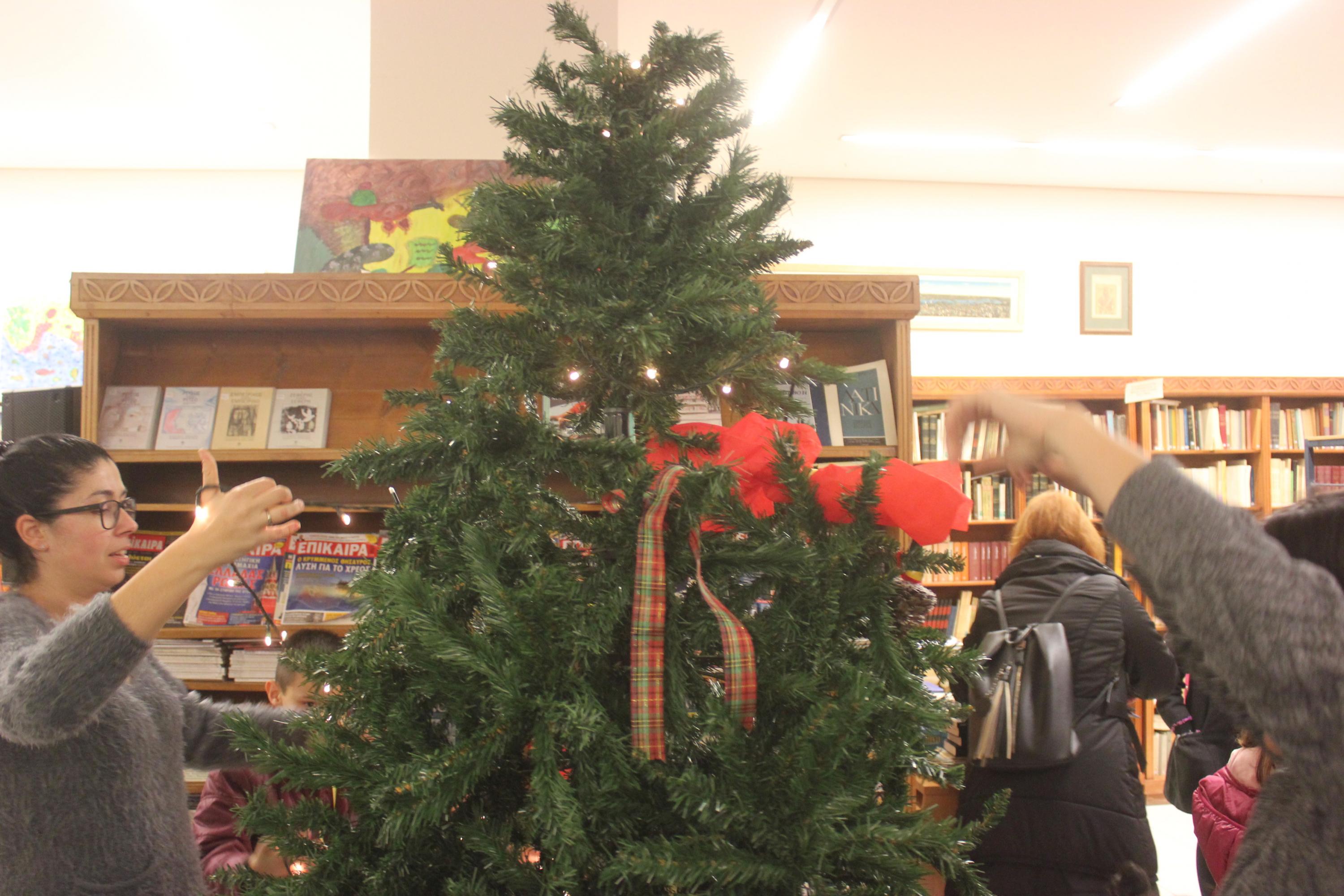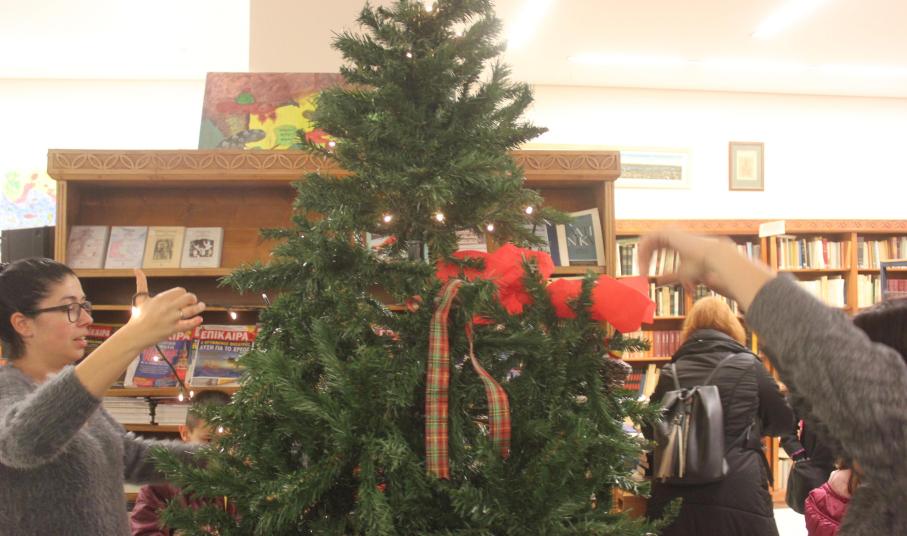 Το μεγάλο και φουντωτό δέντρο της Βιβλιοθήκης περίμενε τις έξι ομάδες των λιλιπούτειων «ντετέκτιβ» να συλλέξουν και να του φέρουν τα στολίδια του, ώστε να λάμψει και να πλημμυρίσει με συναισθήματα χαράς και ελπίδας τους επισκέπτες της δομής.