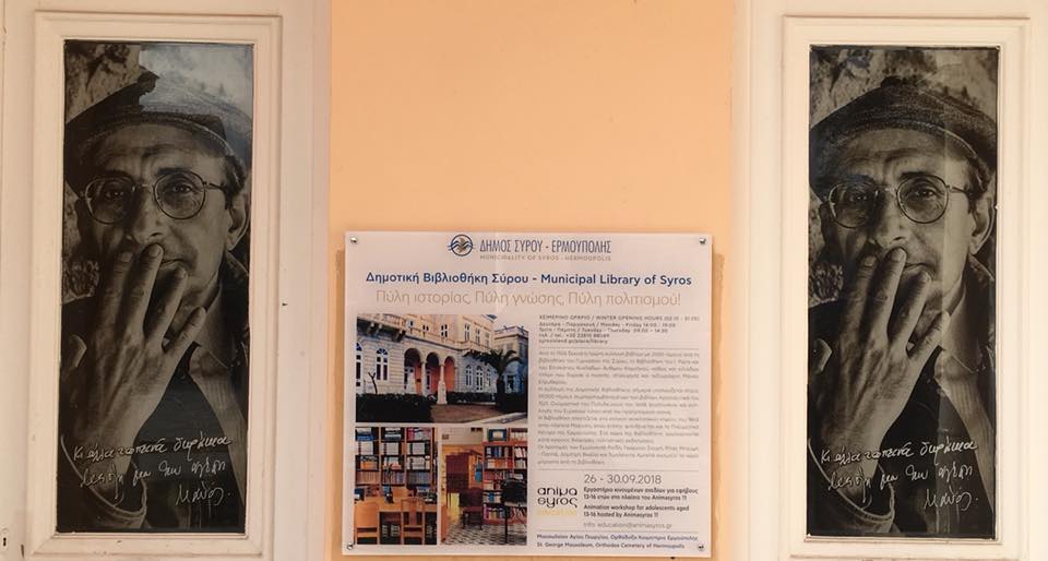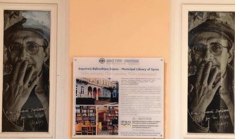 “Στη σκέψη μας ότι απαιτείται να έχουμε μια σύγχρονη πινακίδα με πληροφορίες για την δομή, ο Πρόεδρος και η ομάδα του Animasyros, στο πλαίσιο της καθημερινής μας συνεργασίας, προσφέρθηκαν να δημιουργήσουν και να μας δωρίσουν μια σύγχρονη αφίσα. Με μεγάλη μας χαρά δεχτήκαμε αυτό το ανέλπιστο δώρο, μια αφίσα υψηλής αισθητικής, την οποία και αναρτήσαμε ως πινακίδα. Πρόκειται για μια σπουδαία πινακίδα που δίνει πολύτιμες ιστορικές πληροφορίες στο αναγνωστικό κοινό  για την Δημοτική Βιβλιοθήκη, αναγράφοντας με τιμή τα στοιχεία του δωρητή, δηλαδή του Animasyros εργαστηρίου παραγωγής της animation μικρού μήκους ταινίας για το Μαυσωλείο του Κοιμητηρίου του Αγ. Γεωργίου. Είμαστε ευγνώμονες», κατέληξε η κ. Αγγελοπούλου.