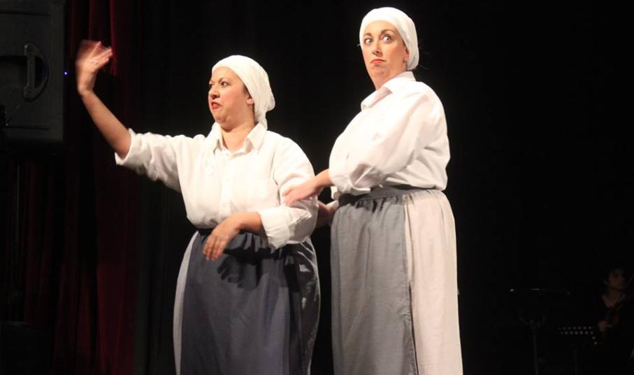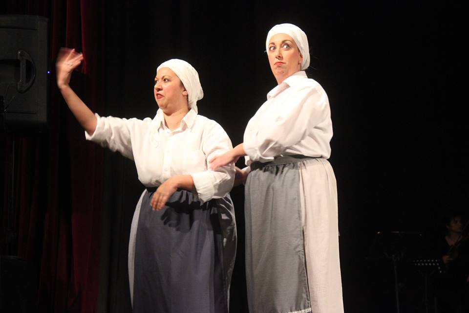 Στο κλίμα του δεύτερου μέρους της παράστασης μας έβαλαν οι Σκαλοπατούδες της Άνω Σύρου (Μαρία Γαδ κα Μαρουλία Καραβιώτου), τις οποίες μάλωσε για το χούι του κουτσομπολιού ο «ιερέας» Νίκος Δουράτσος.