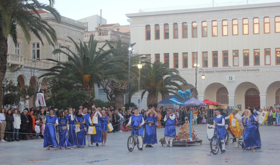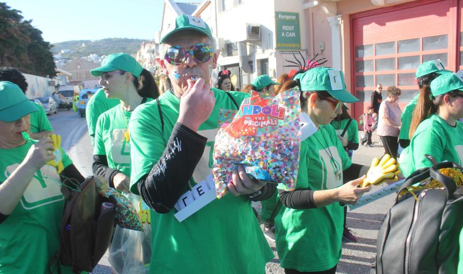 Πέρυσι, γονείς και μαθητές του 5ου Δημοτικού Σχολείου Ερμούπολης έπαιξαν με τα τάμπλετ και την τεχνολογία και φέτος, επέστρεψαν στο Συριανό Καρναβάλι για να παίξουν το επιτραπέζιο παιχνίδι SCRABBLE. Το μήνυμα της ομάδας ήταν: “Όχι στις διακρίσεις ανάμεσα στα παιδιά, κανένα παιδί να μη μένει μόνο του στα διαλείμματα ή στη γειτονιά! Όλα τα παιδιά είναι ίσα και μέσα από το παιχνίδι όλοι να γίνονται μια μεγάλη παρέα που περνάει καλά και διασκεδάζει παίζοντας».