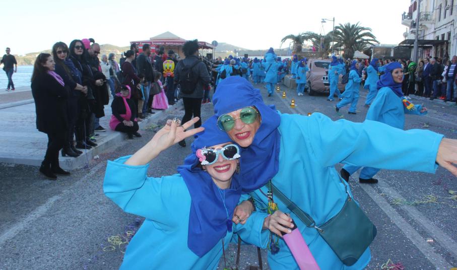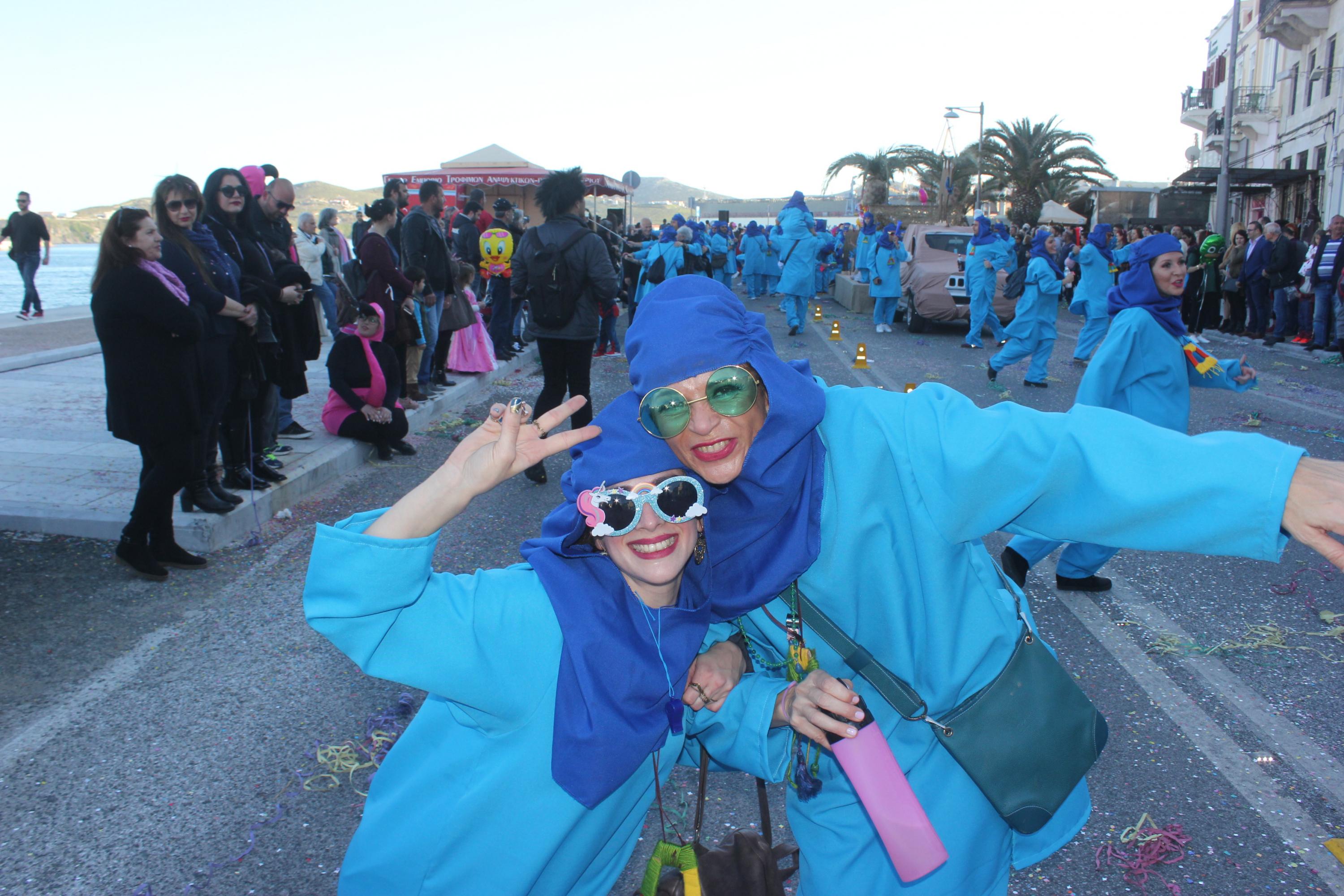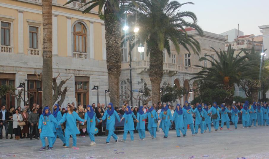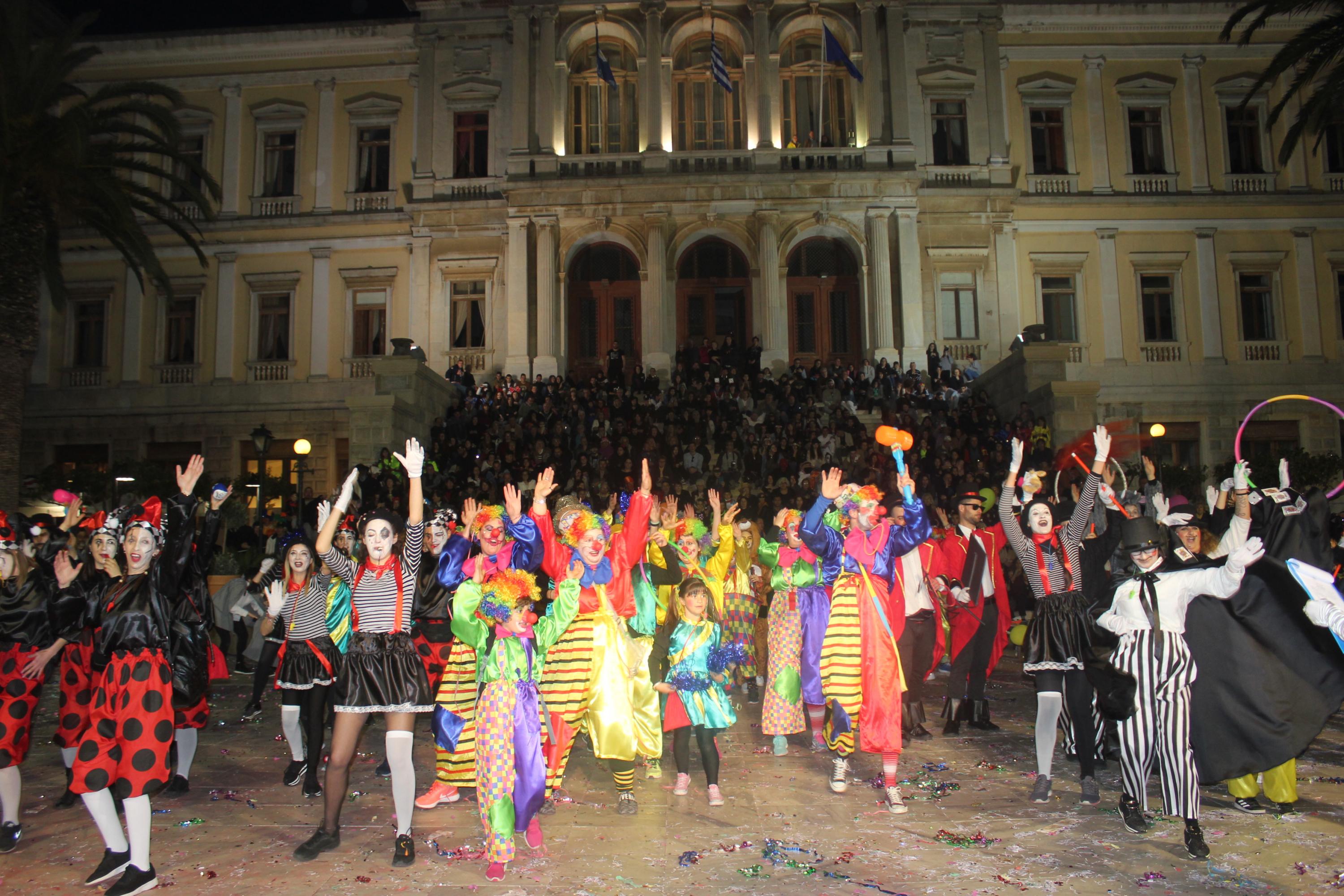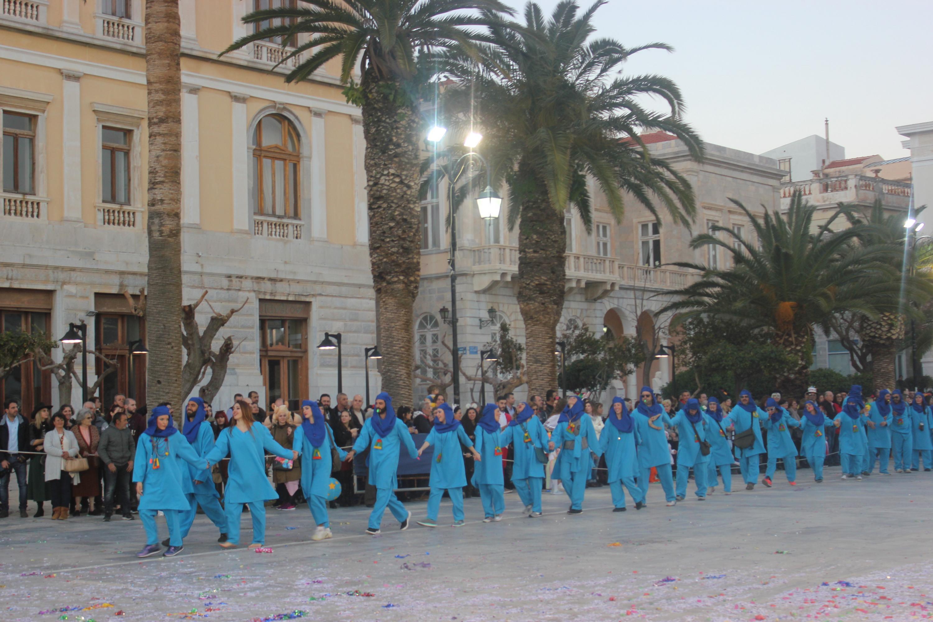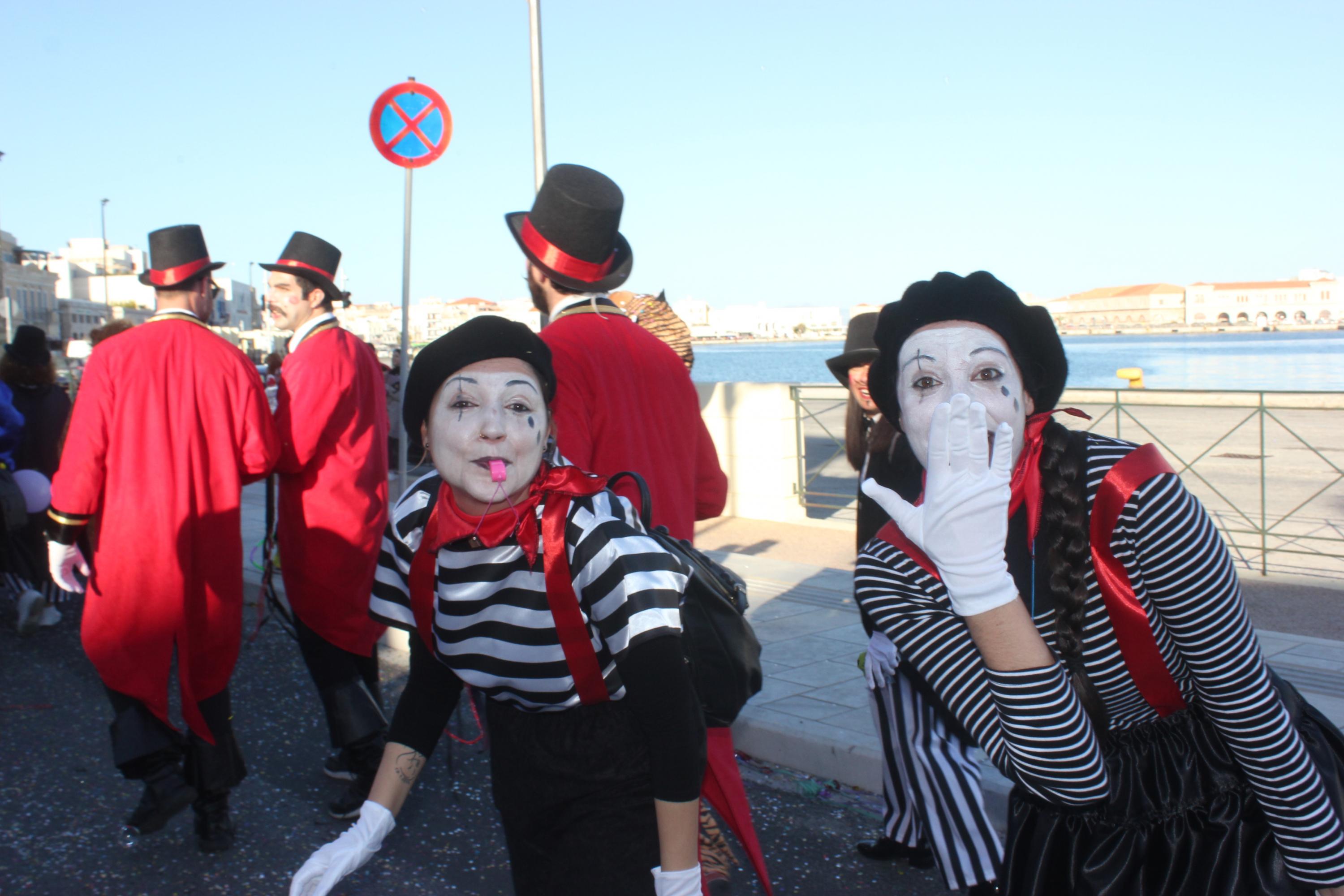 Τα μέλη των καρναβαλικών ομάδων φόρεσαν τις στολές τους και λίγο μετά τις οχτώ παρέλασαν στα γραφικά σοκάκια, ξεσηκώνοντας τους πολυάριθμους θεατές που είχαν πιάσει από νωρίς στασίδι για να πάρουν μία γεύση από τη μεγάλη γιορτή που κορυφώθηκε το επόμενο απόγευμα στο ιστορικό κέντρο της Ερμούπολης.