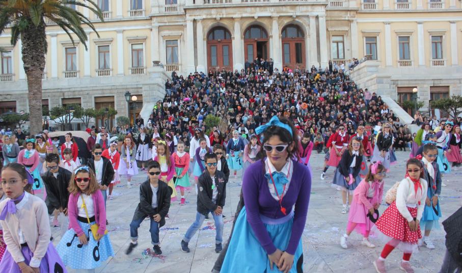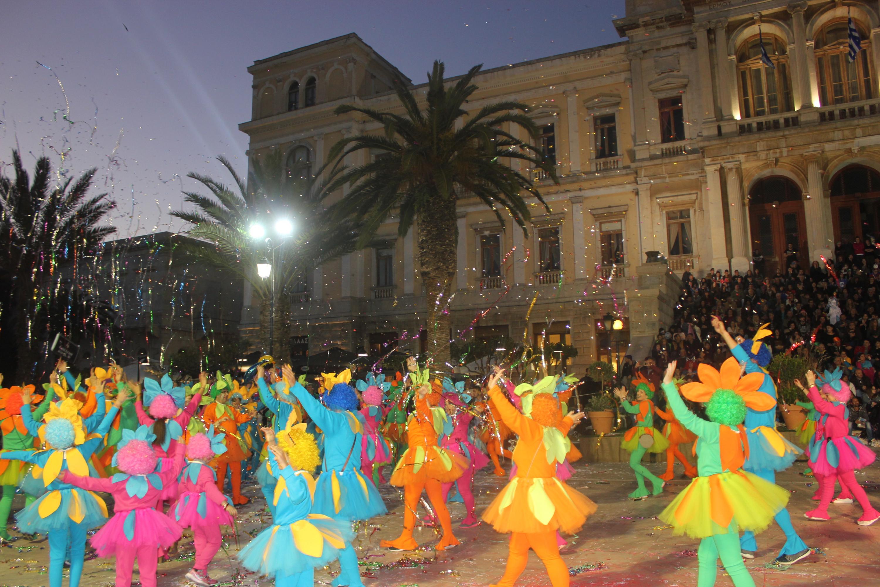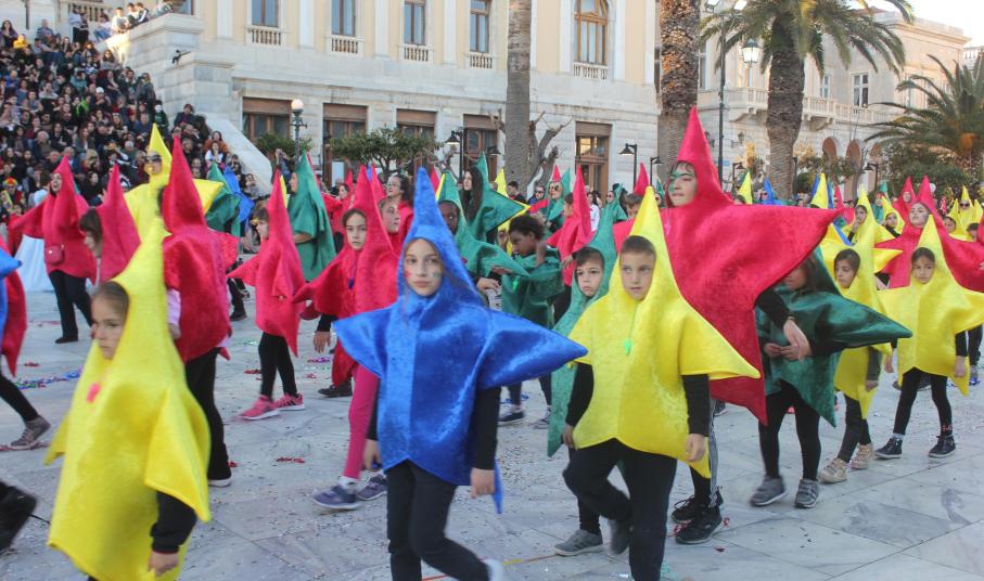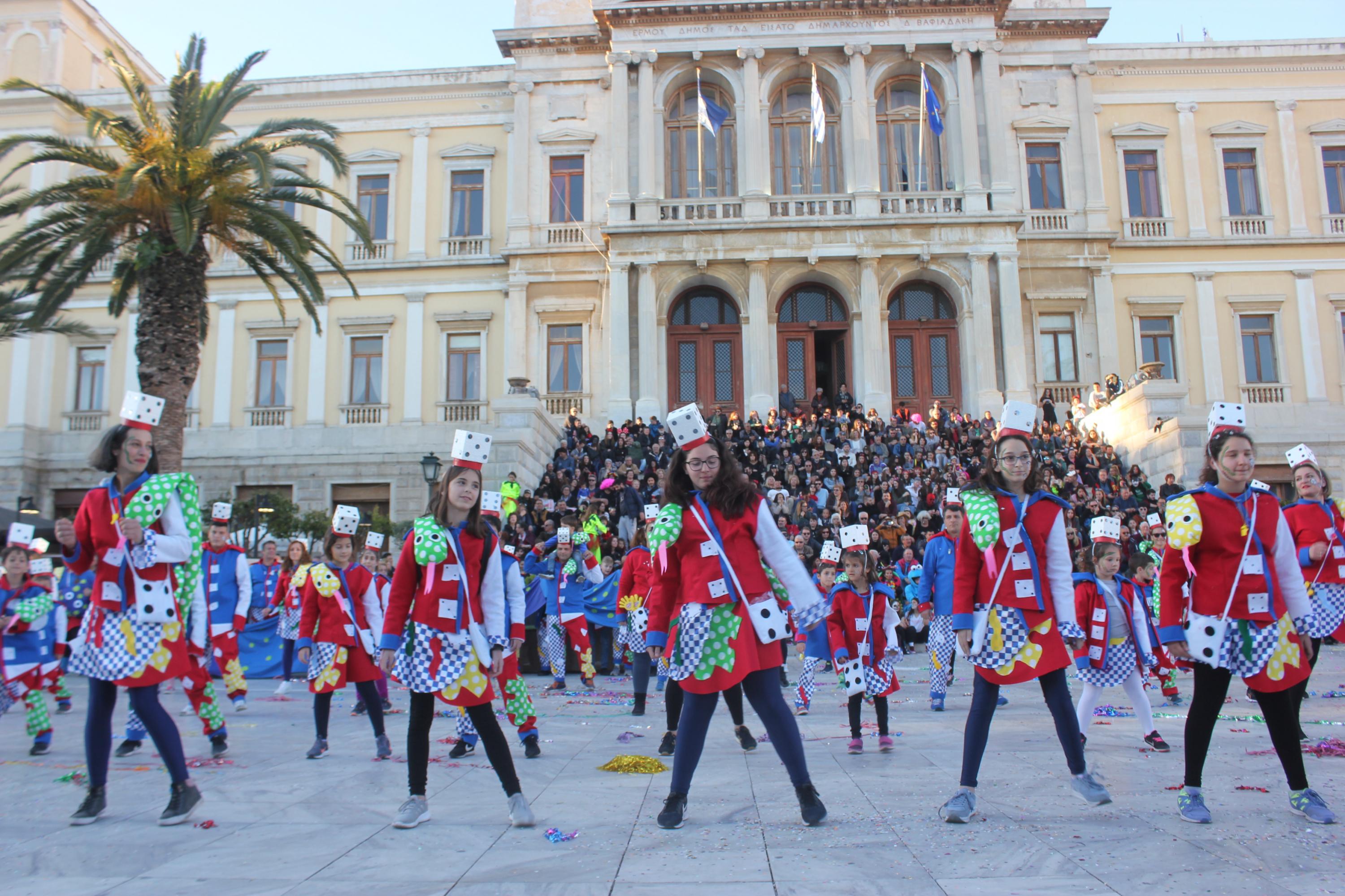 Χρώματα, χαμόγελα, κέφι και αισιοδοξία μοίρασαν και αυτή τη χρονιά μαθητές, γονείς και φίλοι του 4ου δημοτικού Σχολείου Ερμούπολης, οι οποίοι έπαιξαν επιτραπέζια παιχνίδια. Αγαπημένο παιχνίδι τους το φιδάκι. Το κάθε ένα από αυτό που σύρθηκε στην Ερμούπολη είχε το όνομά του, Μήτσος, Βρασίδας κλπ, ενώ το άρμα τους ονομαζόταν Ευγένιος Τριφιδάς.