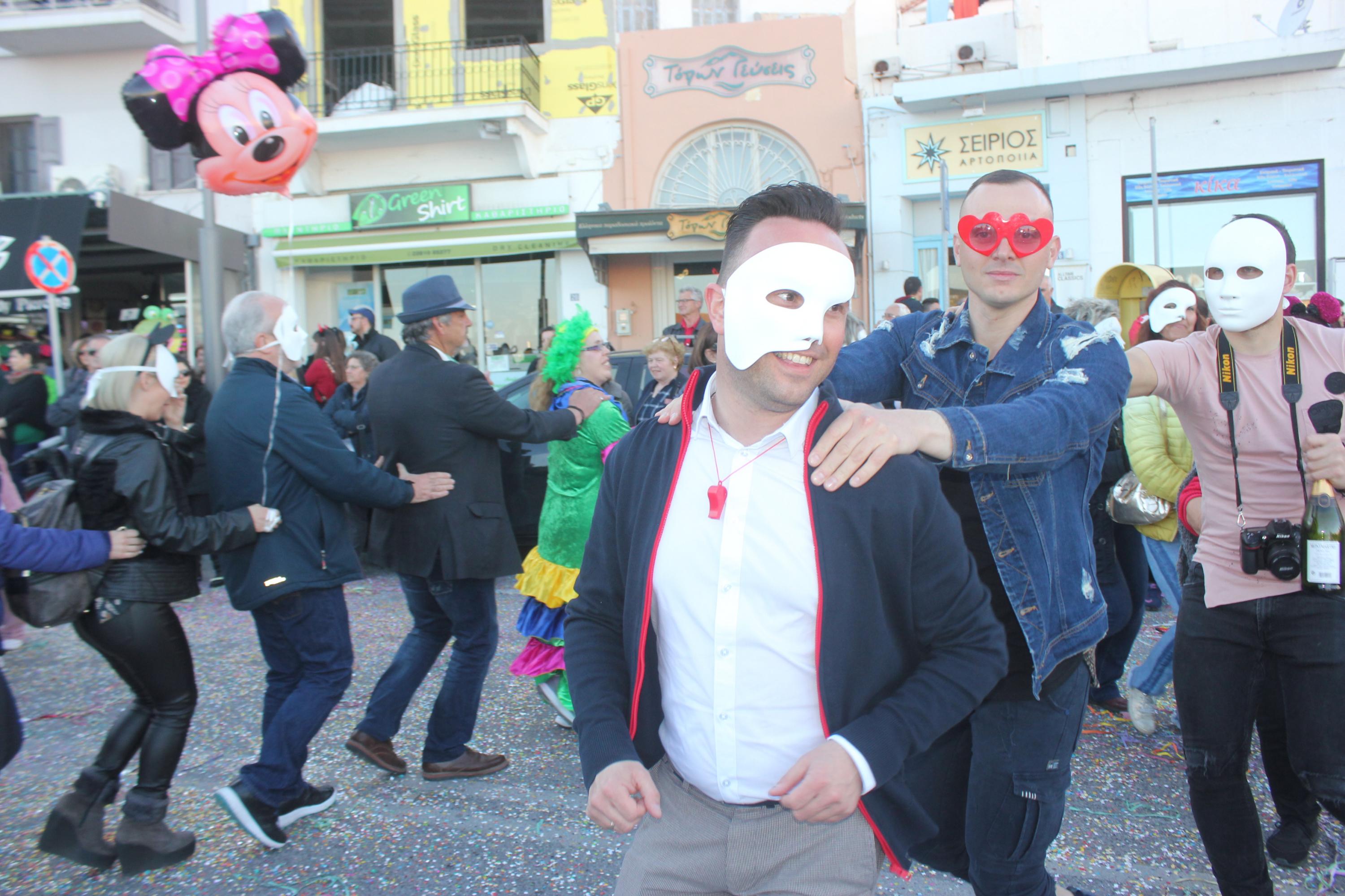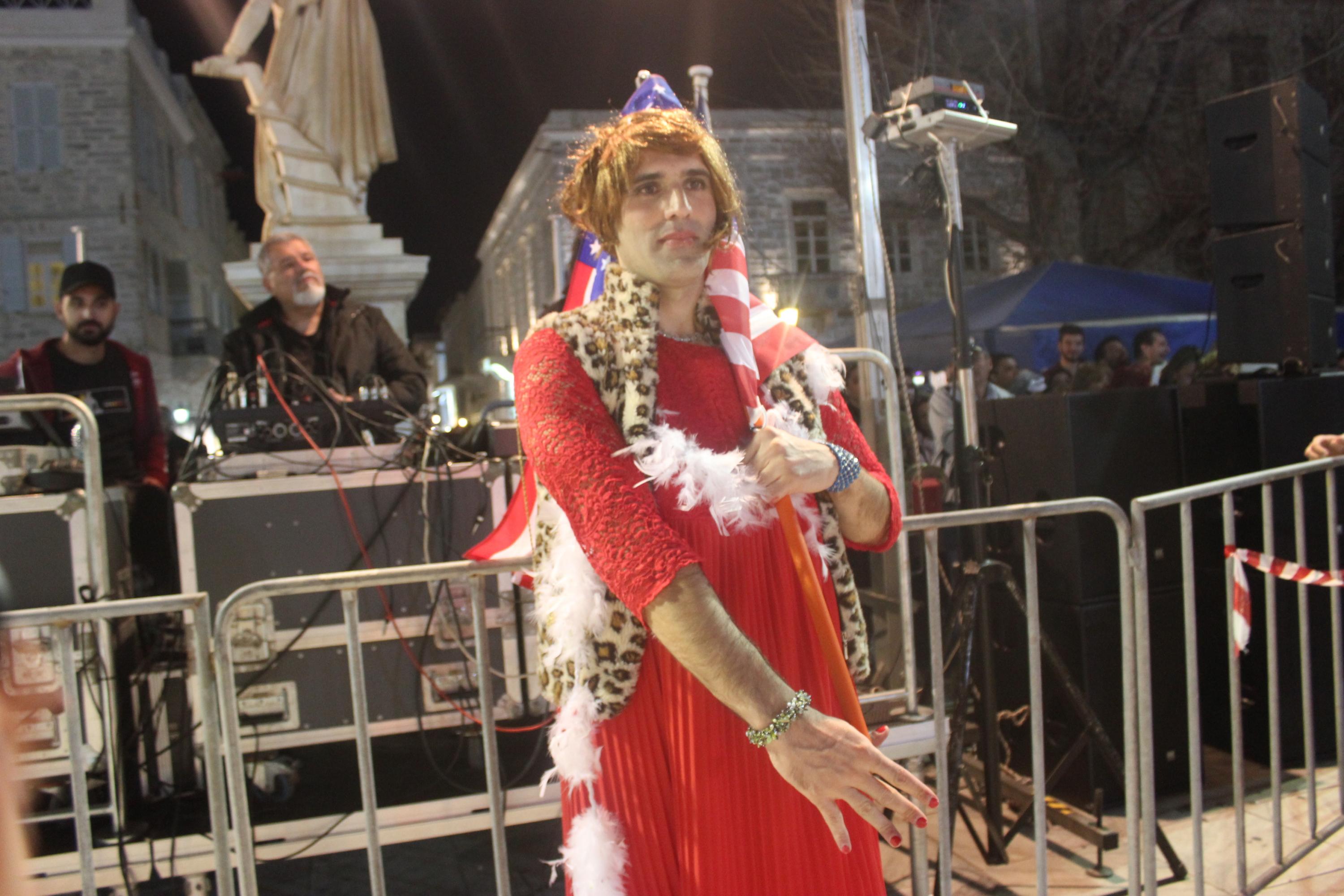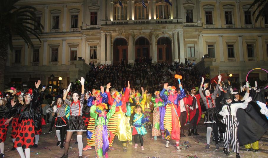 Η παρέλαση στον μεσαιωνικό οικισμό προετοίμασε κατάλληλα το έδαφος και ζέστανε το κοινό για το μεγαλύτερων διαστάσεων πάρτι που έλαβε χώρα την τελευταία Κυριακή της Αποκριάς στην παραλιακή ζώνη της Ερμούπολης και στην πλατεία Μιαούλη. Το φετινό show στη γενέτειρα του Γεωργίου Σουρή, τα είχε όλα: κέφι, ρυθμό, διάθεση στο κόκκινο, πολλή φαντασία, ευρηματικότητα και μοναδικές παρουσιάσεις που κατέβασαν μονομιάς από το βάθρο παλαιότερες performances.