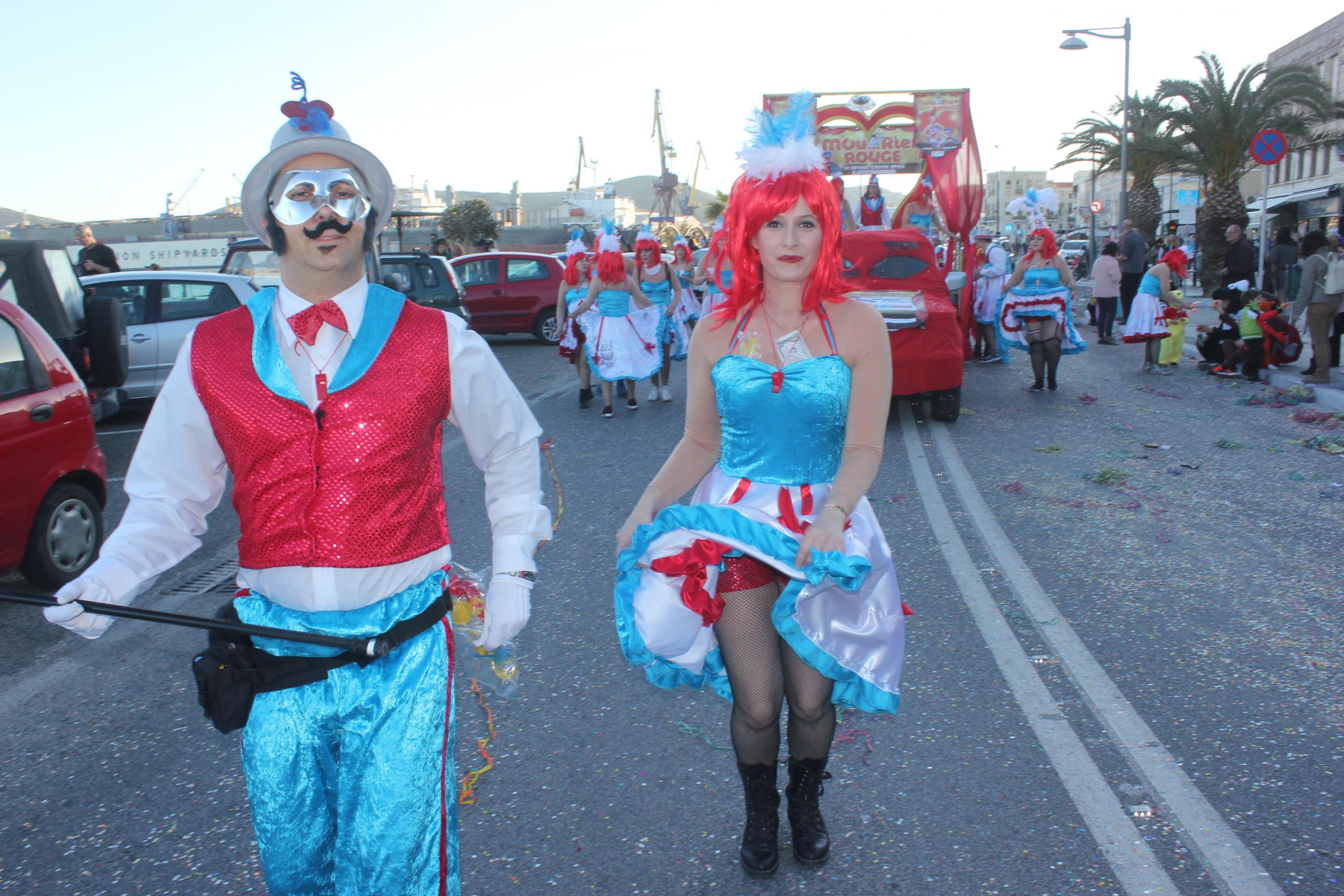 Ερημίτες, κλόουν, χορευτές και χορεύτριες του Μου(ρ)λέν Ρουζ, μαργαρίτες, επιτραπέζια παιχνίδια, κλόουν, Ινδιάνοι, Μικροί Πρίγκιπες, ληστές, ναυτάκια και τροτέζες, αστέρια, οι θεοί του Ολύμπου και πολλές ακόμη προσωπικότητες έκαναν δυναμική εμφάνιση, χόρεψαν, τραγούδησαν, κυλίστηκαν στα σκαλοπάτια και γοήτευσαν τα πλήθη με το αστείρευτο κέφι τους και την περίσσεια χαρά τους. Θερμό χειροκρότημα απέσπασε, μεταξύ άλλων, η αδελφοποιημένη με τον τ. Δήμο Άνω Σύρου πόλη Grillon της Γαλλίας, προς τιμήν της οποίας πραγματοποιήθηκε το πρωί της Κυριακής χορευτική παράσταση στο Θέατρο «Απόλλων» με τη συμμετοχή τεσσάρων Συλλόγων.