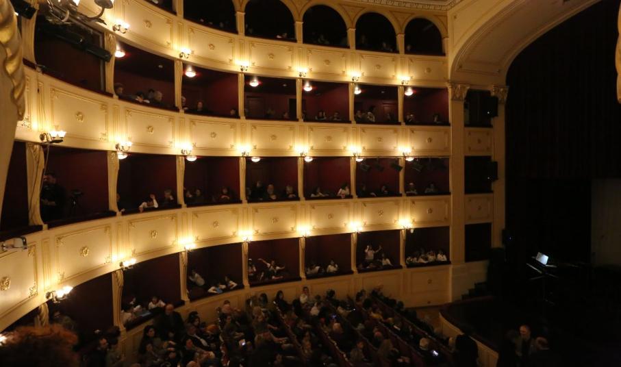 Στο κατάμεστο Θέατρο "Απόλλων" της Ερμούπολης παρουσιάστηκε την Καθαρή Δευτέρα η πρώτη φάση της δράσης «100 Κτήρια / 100 Ιστορίες» του Ινστιτούτου Σύρου και της HERMeS.