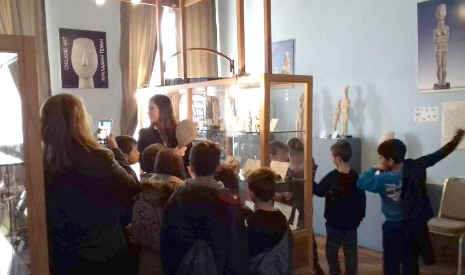 Η υπάλληλος ξενάγησε τους μαθητές στο χώρο της έκθεσης, τους παρουσίασε μοναδικά αντίγραφα προϊστορικών ειδωλίων που περιέχονται στη συλλογή της και τους ενημέρωσε για τον σπουδαίο Κυκλαδικό Πολιτισμό της 3ης χιλιετίας π.Χ. που θεωρείται ένας από τους πέντε σημαντικότερους του κόσμου.