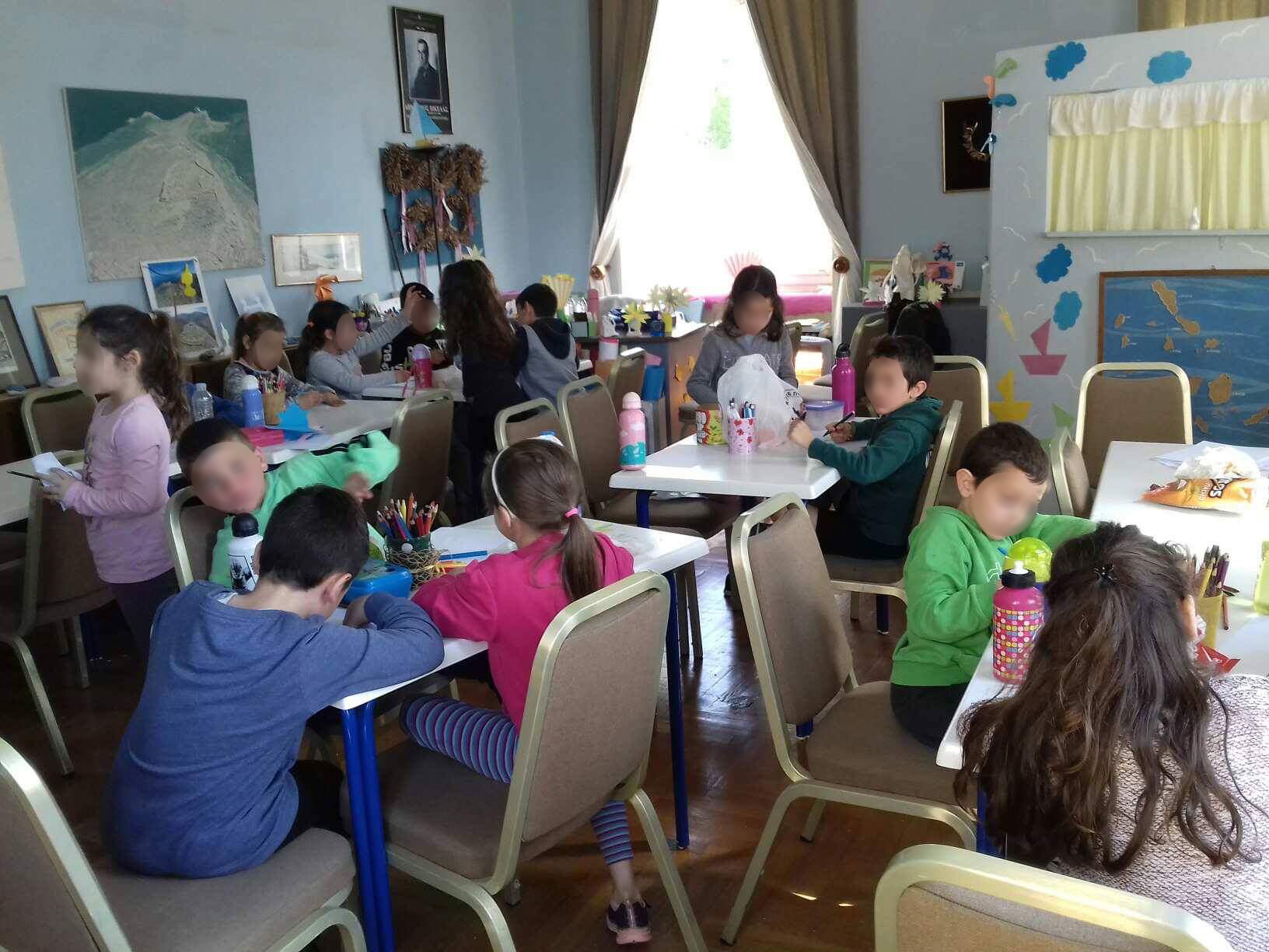 Αμέσως μετά, τα παιδιά είχαν την ευκαιρία να ζωγραφίσουν στο χώρο εκπαιδευτικών προγραμμάτων, ο οποίος διαμορφώθηκε με τη φροντίδα και την επιμέλεια της κ. Μπάνου σε ένα φιλόξενο και χαρούμενο εργαστήριο για την υλοποίηση δράσεων από τα σχολεία που επισκέπτονται την έκθεση.