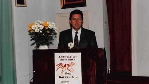 ... “Τα τελευταία 24 περίπου χρόνια δημιουργήθηκε μια μεγάλη παραγωγή αιμοδοτικών συλλόγων στην Ελλάδα. Οι εθελοντές αιμοδότες των συλλόγων, αρχίζουν να εντοπίζουν και να προσκαλούν, αλλά και να πείθουν αρκετούς ανθρώπους οι οποίοι γρήγορα “μετακινούνται” από το φυσικό τους χώρο και φθάνουν στο περιβάλλον της αιμοδοσίας, ώστε να προσφέρουν ζωή στον άνθρωπο που έχει ανάγκη. Είναι σημαντικό ότι τα τελευταία χρόνια αποκαλύφθηκαν πολλοί ανώνυμοι εθελοντές αιμοδότες, αλλά... οι “μπροστάρηδες” της ιδέας και του σκοπού βοήθειας του συνανθρώπου είναι πολύ λίγοι... Είναι σημαντική η συνδρομή της εκκλησίας της Ελλάδος που δημιούργησε πυρήνες εθελοντών αιμοδοτών. Αλλά και η Καθολική εκκλησία με κάθε τρόπο και σε κάθε ευκαιρία συνδράμει όλες τις προσπάθειες ανάπτυξης της εθελοντικής αιμοδοσίας. Ιδιαίτερη μνεία οφείλουμε σε έναν παλαιό και θερμό εθελοντή αιμοδότη, αλλά και εξαίσιο άνθρωπο με υψηλό ήθος και καλλιέργεια, τον πατέρα Αντώνιο Βουτσίνο, καθολικό κληρικό από τη Σύρο, που υπήρξε πρωτοπόρος στο χώρο του, έχοντας ιδρύσει και προεδρεύσει για πολλά χρόνια ενός εύρωστου, δραστήριου και με ευρεία κοινωνική αναγνώριση συλλόγου. Η προσφορά του συλλόγου είναι άριστη και πανανθρώπινη. Έσωσαν ζωές ανθρώπων όχι μόνο στο νησί τους, αλλά και σε άλλες περιοχές όταν τους ζητήθηκε”.