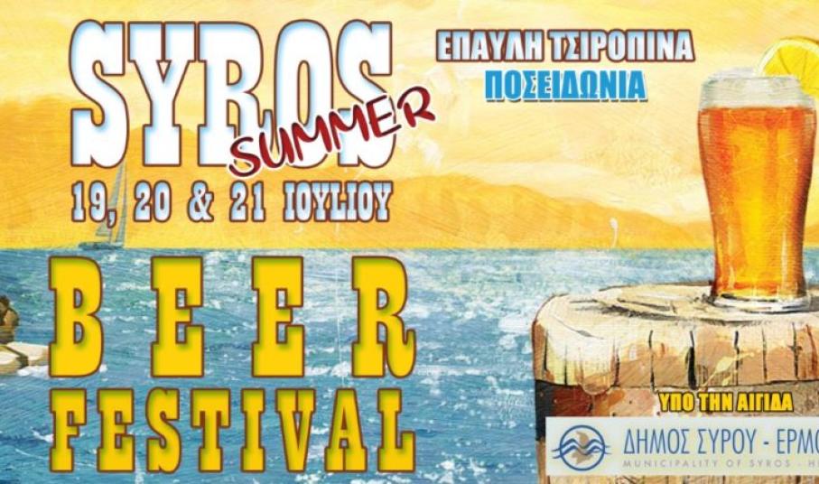 Δεκάδες μπύρες Ελληνικής Μικροζυθοποιίας και άλλες τόσες από την Παγκόσμια αγορά θα έχουν την ευκαιρία να γευτούν όσοι θα βρίσκονται στον ατμοσφαιρικό χώρο της Έπαυλης Τσιροπινά, στην Ποσειδωνία. Παγωμένες μπύρες, υπέροχοι μπυρομεζέδες, αλλά και ζωντανή μουσική από καταξιωμένους Έλληνες καλλιτέχνες αποτελούν τα κύρια συστατικά του «Syros Summer Beer Festival», που θα διεξαχθεί από 19 έως 21 Ιουλίου 2019.