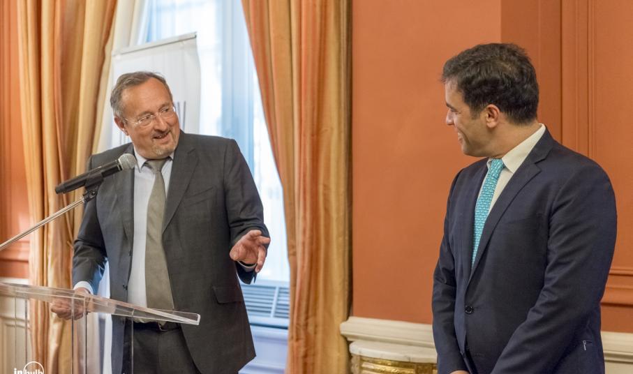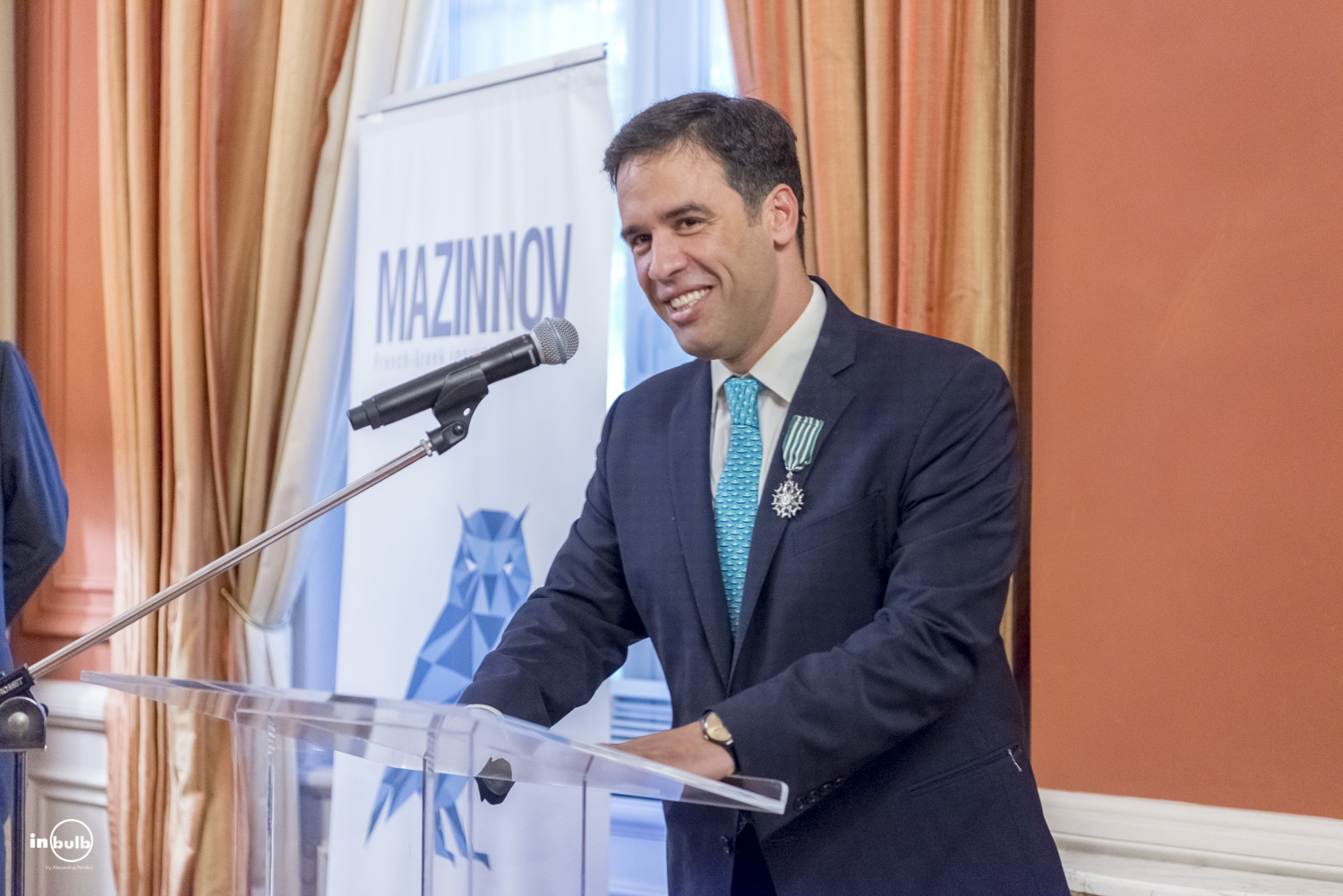 Στο λόγο του, ο γάλλος Πρέσβης, Κριστόφ Σαντεπί τόνισε την πολυσχιδή δράση του βραβευόμενου στον τομέα του ελληνικού ψηφιακού πολιτισμού και εξήρε την μεγάλη του αγάπη για τον πολιτισμό, τη γλώσσα και το λαό της Γαλλίας.