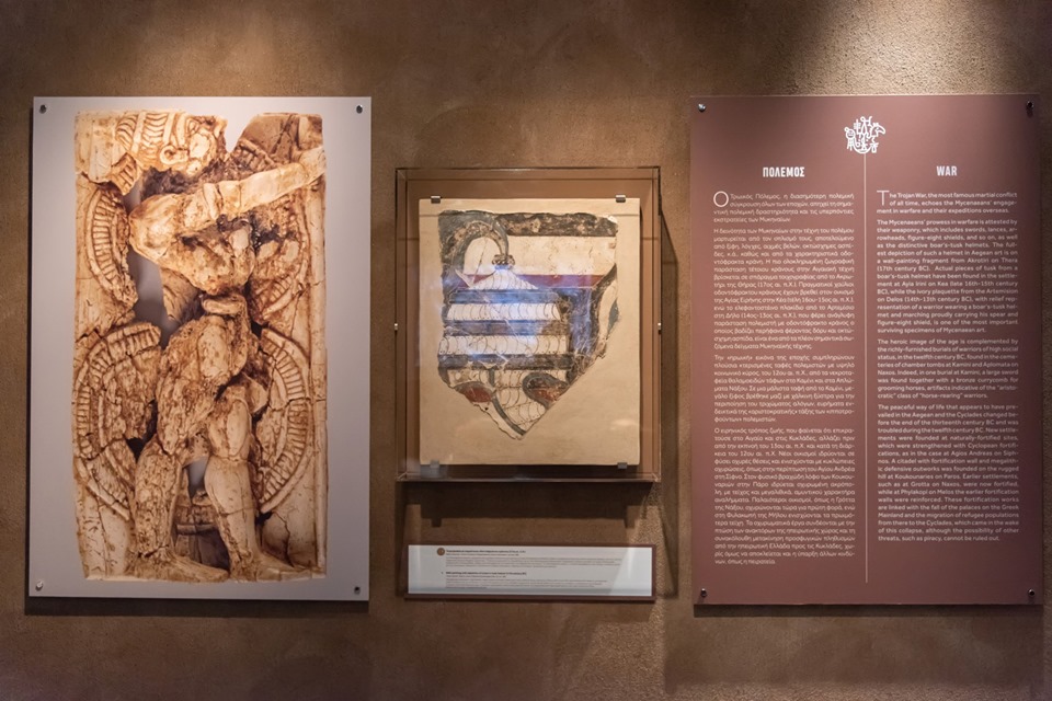 Οι επισκέπτες έχουν την ευκαιρία να θαυμάσουν μυκηναϊκά ευρήματα από εννέα νησιά των Κυκλάδων. Για πρώτη φορά, παρουσιάζονται στο ευρύ κοινό τα ευρήματα του σπάνιου για ολόκληρο το Αιγαίο μυκηναϊκού θολωτού τάφου στην Αγία Θέκλα στην Τήνο, τον οποίο ανέσκαψε ο Γεώργιος Δεσπίνης, το 1979. Τόπος ταφής ενός γένους «αριστοκρατών», ο θολωτός της Αγίας Θέκλας είναι ένας από τους τρεις μόνο γνωστούς θολωτούς μυκηναϊκούς τάφους στις Κυκλάδες. Εξίσου σημαντικά είναι τα αντικείμενα από τον μυκηναϊκό τάφο στα Αγγελικά Μυκόνου.