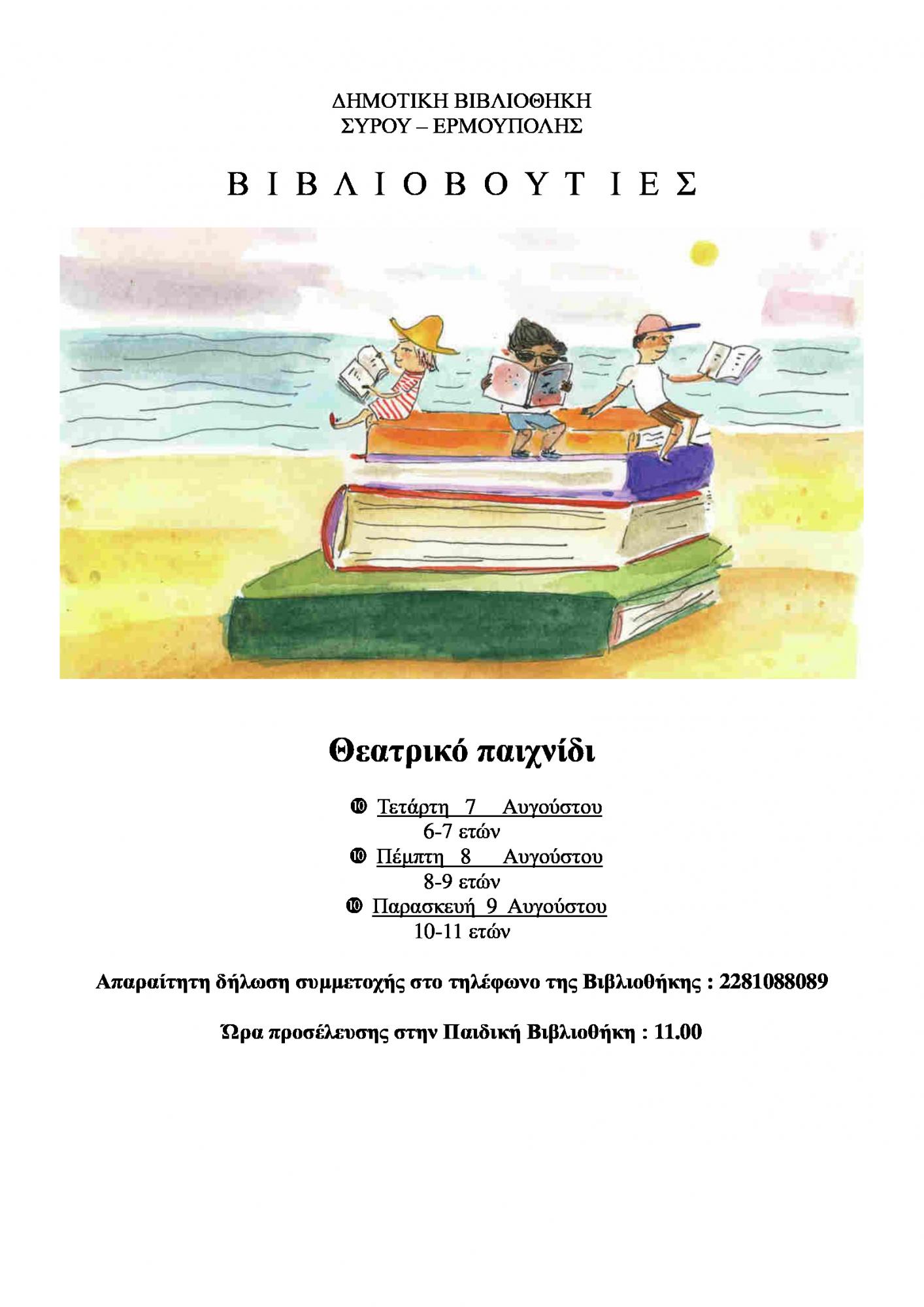 Στο μαγικό κόσμο των βιβλίων θα "βουτήξουν" παιδιά ηλικίας 6-11 ετών μέσα από τις καλοκαιρινές δραστηριότητες της Δημοτικής Βιβλιοθήκης Σύρου - Ερμούπολης.