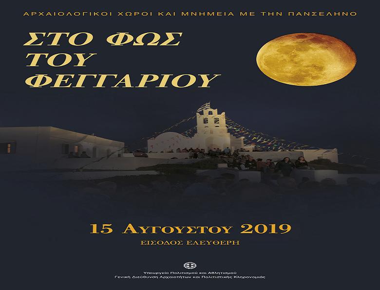 Το Υπουργείο Πολιτισμού και Αθλητισμού διοργανώνει συστηματικά από το 1999 τις εκδηλώσεις της Αυγουστιάτικης πανσελήνου, προσκαλώντας χιλιάδες Έλληνες και ξένους επισκέπτες, να παρακολουθήσουν ποιοτικές εκδηλώσεις και να θαυμάσουν τους αρχαιολογικούς χώρους, κάτω από το φως του φεγγαριού.