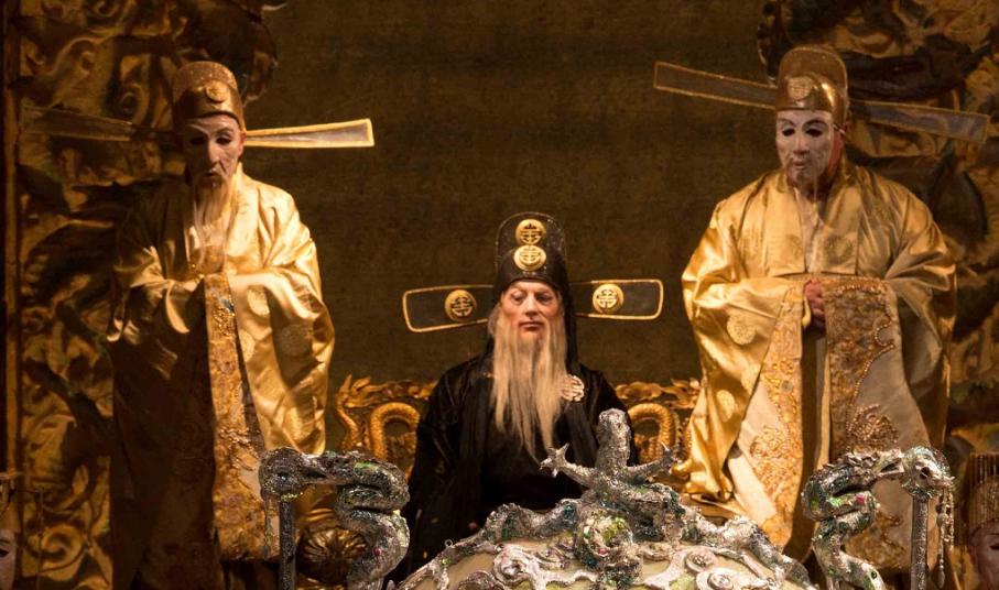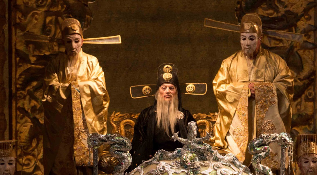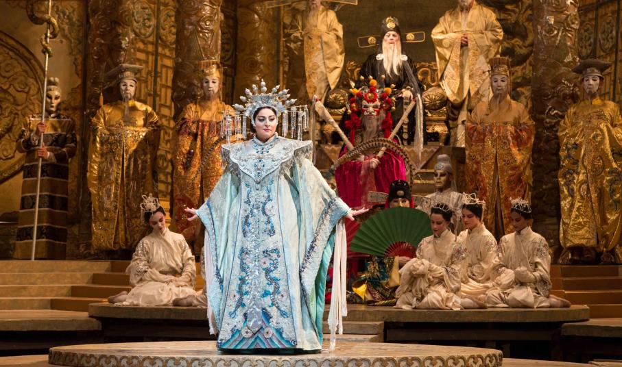 Ο Μουσικός Διευθυντής της Met Yannick Nézet-Séguin διευθύνει την επική παραγωγή του εμβληματικού Franco Zeffirelli του 1987. Πρωταγωνιστεί η Christine Goerke στον ομώνυμο ρόλο της παγερής Κινέζας πριγκίπισσας Τουραντότ, που έχει απορρίψει όλους τους άνδρες. Ο Roberto Aronica ερμηνεύει τον Καλάφ, τον ερωτευμένο νέο που διακινδυνεύει την ζωή του για να κερδίσει το χέρι της πριγκίπισσας και τραγουδά την περίφημη άρια “Nessun dorma.” Η Eleonora Buratto είναι η μικρή σκλάβα Λιού και ο James Morris ο χαμένος πατέρας του Καλάφ, ο Τιμούρ.