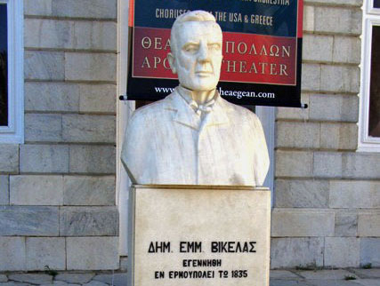 Ο Δημήτριος Βικέλας, ένας φωτισμένος πνευματικός Έλληνας, ήταν ο πρωτότοκος γιος του Εμμανουήλ Βικέλα και της Σμαράγδας Μελά. Σ' ένα από τα βιβλία του “Η ζωή μου” αναφέρεται στη βιογραφία του και στη δραστηριότητα της οικογένειάς του. (Μεταφορά στη δημοτική γλώσσα). “Γεννήθηκα στην Ερμούπολη, στις 15 Φεβρουαρίου 1835, στο σπίτι του παππού μου Γεωργίου Μελά, που βρίσκεται στη σημερινή πλατεία Θεάτρου. Ήταν τότε μια από τις καλλίτερες οικοδομές που έκτισαν πρόσφυγες που κατέφυγαν στη Σύρο για την ασφάλεια της ζωής τους από τους Τούρκους....”.