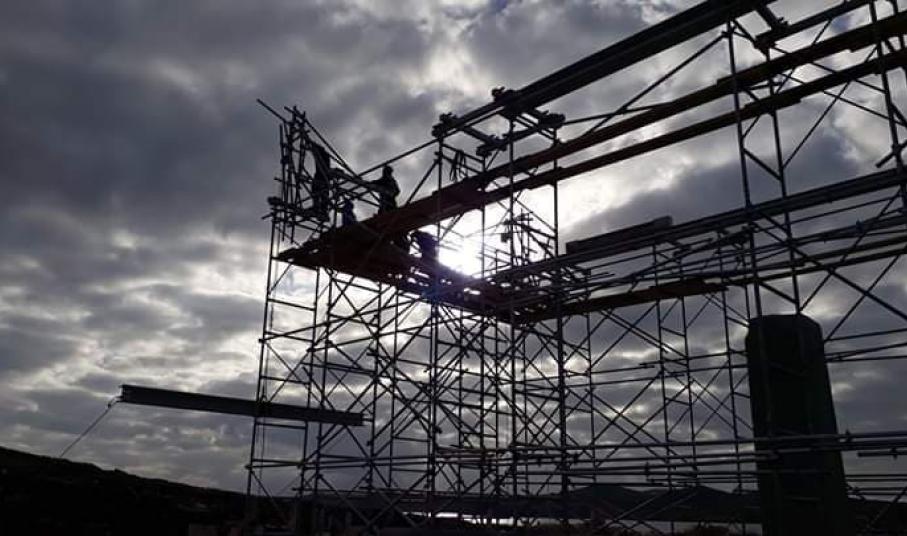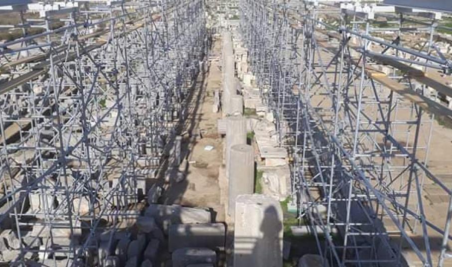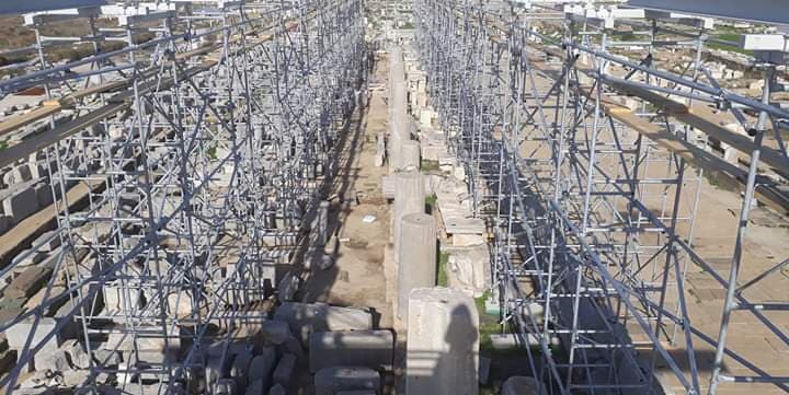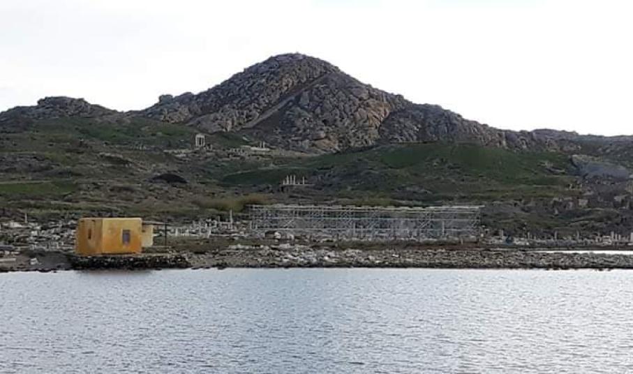 Η εγκατάσταση του ικριώματος είναι το επόμενο βήμα των εργασιών αναστήλωσης της θαυμαστής Στοάς του Φιλίππου Ε’ που υλοποιούνται στο νησί της Δήλου.