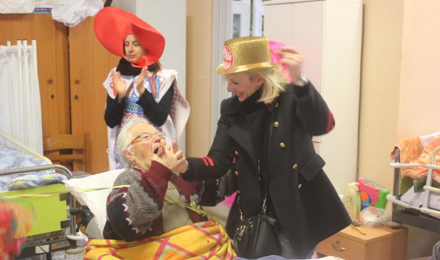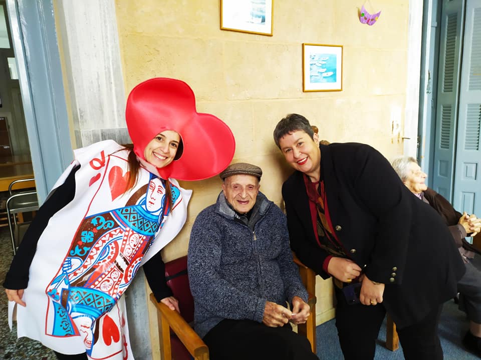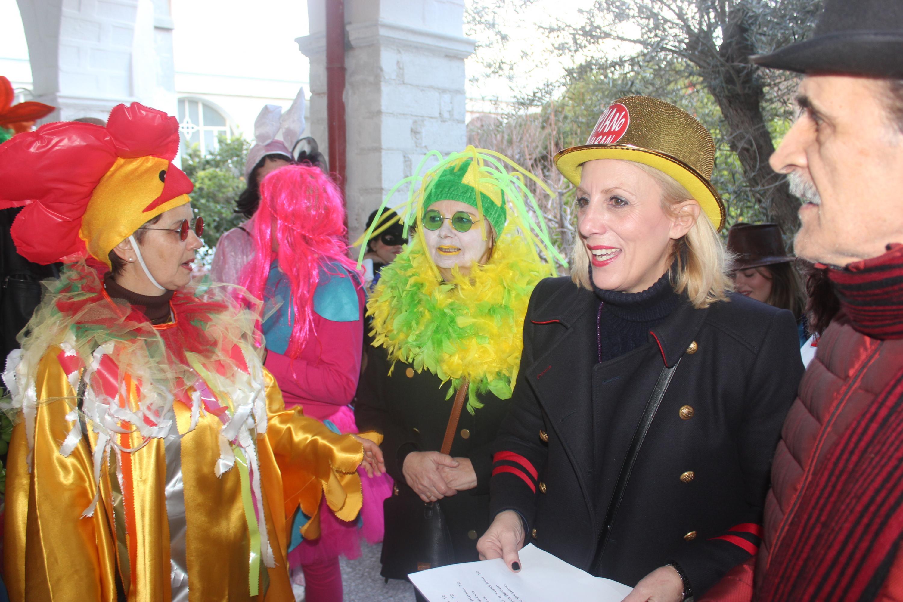 Οδηγός σε αυτή την παρέλαση αγάπης ήταν η Αντιδήμαρχος Πολιτισμού, Αλίκη Λεονταρίτη η οποία μαζί με στελέχη και συνεργάτες του Τμήματος Πολιτισμού, την εντεταλμένη σύμβουλοι κοινωνικής πρόνοιας, Αγγελική Πρίντεζη και εκπροσώπους των καρναβαλικών ομάδων δεν σταμάτησε ούτε λεπτό να ανταλλάσσει χαμόγελα και αγκαλιές με τους γέροντες.