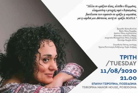 Την Τρίτη 11 Αυγούστου 2020, ο Λαογραφικός – Χορευτικός Όμιλος «η σοφία της παράδοσης» παρουσιάζει στην Έπαυλη Τσιροπινά, στην Ποσειδωνία το μουσικό αφιέρωμα “Μάνα μου, Παναγία μου” σε σκηνοθεσία Γιάννη Δεσύπρη. Συμμετέχουν οι: Καίτη Κουλλιά (φωνή), Νίκος Σκαφίδας (βιολί), Νίκος Αγγελόπουλος (λαούτο), Απόστολος Μάρης (κανονάκι), Νίκος Απέργης (ακορντεόν & φυσαρμόνικα). Η έρευνα και ο συντονισμός ανήκουν στην πρόεδρο του Ομίλου, Σοφία Λούβαρη.