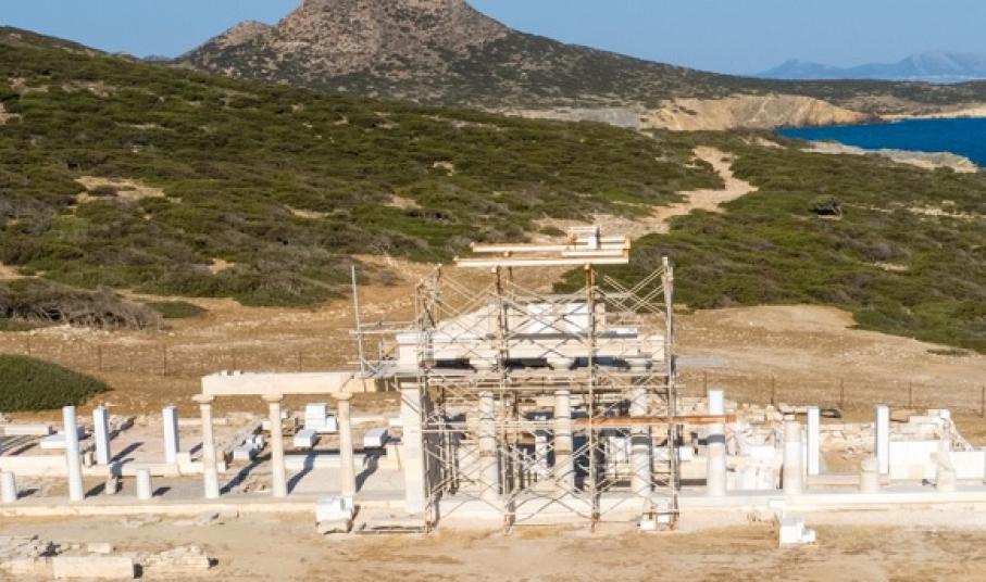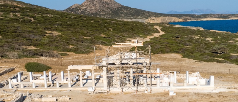 Σημαντική πρόοδο έχουν σημειώσει οι εργασίες αναστήλωσης του αρχαϊκού ναού και του εστιατορίου του Ιερού του Απόλλωνα στο Δεσποτικό, οι οποίες βαίνουν προς την ολοκλήρωσή τους, με το μνημείο να έχει ανακτήσει πλέον, σημαντικό μέρος από το αρχικό ύψος του και να δεσπόζει στον χώρο. Ήδη από το Νοέμβριο του 2019 είχαν απομακρυνθεί οι σκαλωσιές από την κιονοστοιχία του εστιατορίου μετά την ολοκλήρωση της αναστήλωσης της. Φέτος, έγιναν εργασίες στο βόρειο και δυτικό τοίχο του ναού που συμπληρώθηκαν με νέους και αρχαίους δόμους, στο θυραίο τοίχο των δωματίων του ναού και στα κατώφλια, στις παραστάδες ναού και εστιατορίου και στους σπονδύλους ναού και εστιατορίου. Τέλος, ένα σημαντικό βήμα επετεύχθη με την τοποθέτηση και προσαρμογή στον θριγκό του ναού πέντε αρχαίων τριγλύφων, δύο αρχαίων και δύο νέων μετοπών.