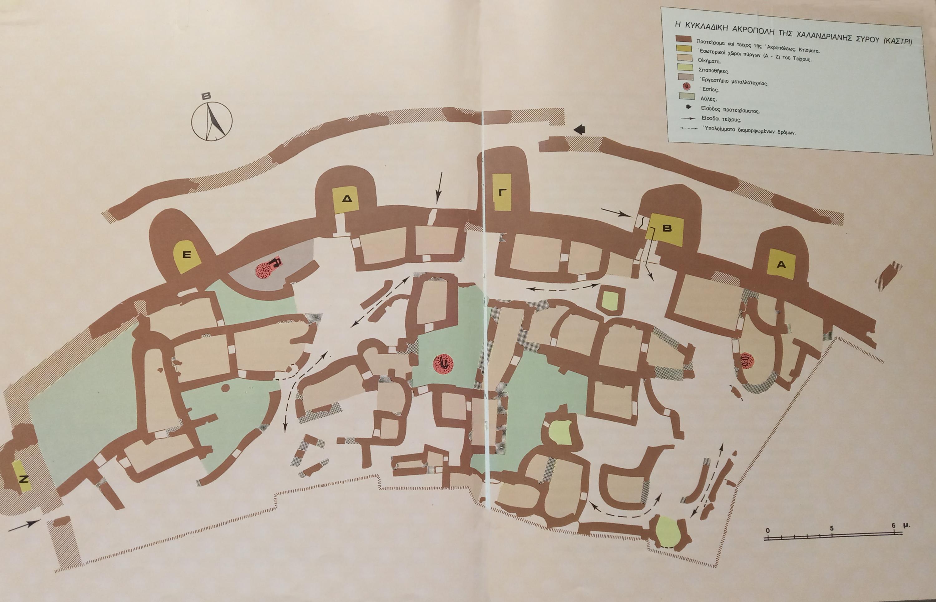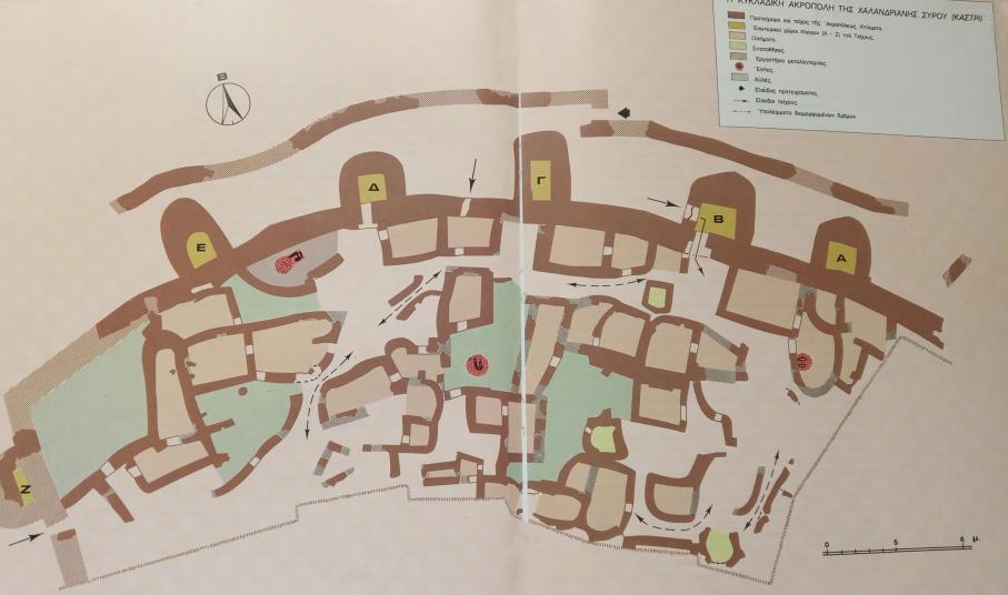 Χαρακτηριστικό δείγμα τυπικού, οργανωμένου, πλούσιου και πολυάνθρωπου κυκλαδικού συνοικισμού κοντά στη θάλασσα , με τεχνητή και φυσική οχύρωση, στην κορφή του λόφου Καστρί, με εύφορες μικρές πεδιάδες για γεωργία και κτηνοτροφία, με εξασφαλισμένο πόσιμο νερό και με αρκετά μεγάλο νεκροταφείο βρίσκεται στη Χαλανδριανή.