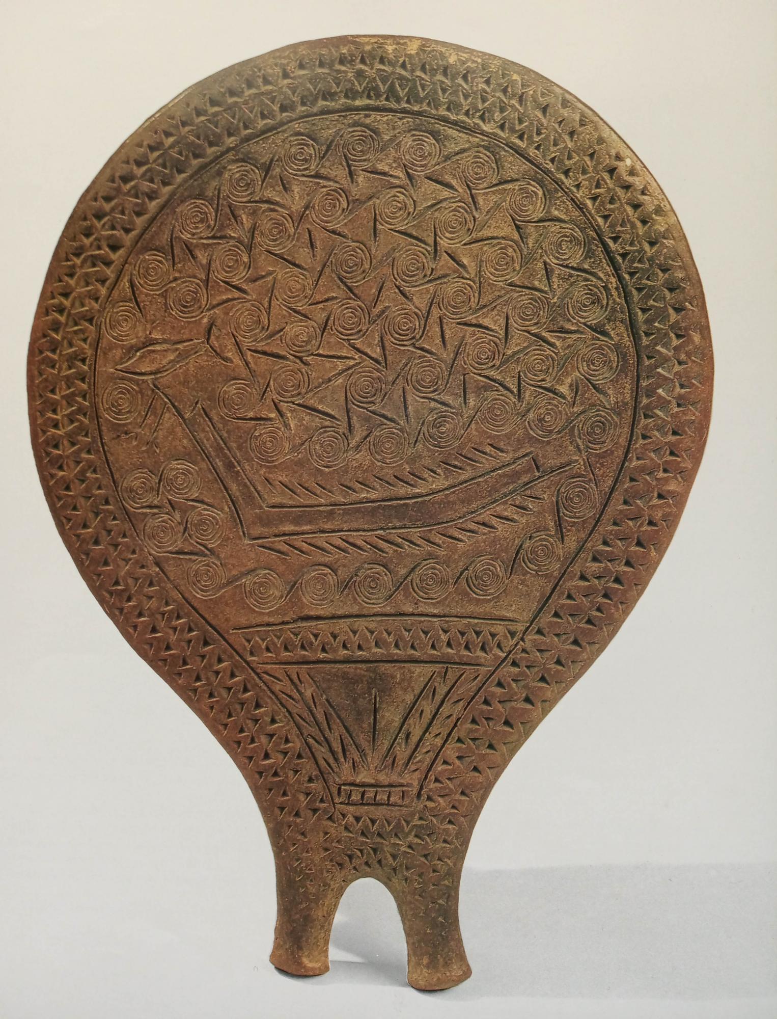Αξίζει να γίνει ειδική αναφορά στα “τηγανοειδή” πήλινα σκεύη του οικισμού, με την ωραίας τέχνης κατασκευή και ποιότητα πηλού. Τα περισσότερα από αυτά τα “τηγανόσχημα” έχουν μια πανέμορφη εγχάρακτη διακόσμηση, με την παρουσία του χαρακτηριστικού κωπήλατου πλοίου με το ψάρι και γύρω – τριγύρω με την ελικοειδή διακόσμηση (ίσως παρουσιάζει το κύμα της θάλασσας;). Όπως αναφέρουν ειδικοί: “Η θαυμαστή αυτή χαρακτική σύνθεση με το θαλασσινό θέμα της μας μιλάει για τη ναυτική κυριαρχία των Κυκλαδιτών στον Αιγαίο, στο μακρινό αυτό παρελθόν”.