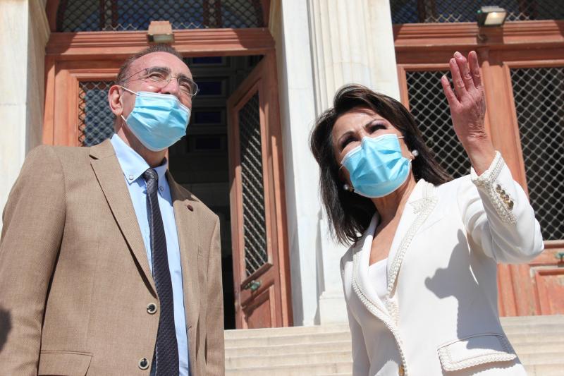 Η κ. Αγγελοπούλου ευχαρίστησε τους εκπροσώπους των δύο Εκκλησιών και της τοπικής αυτοδιοίκησης για τη θερμή συμπαράστασή τους στο έργο της Επιτροπής και τους δώρισε το επίσημο αναμνηστικό μετάλλιο «Προπομπός», που απεικονίζει το έργο του λαϊκού ζωγράφου Θεόφιλου Χατζημιχαήλ «Αναγεννηθείσα Ελλάδα».