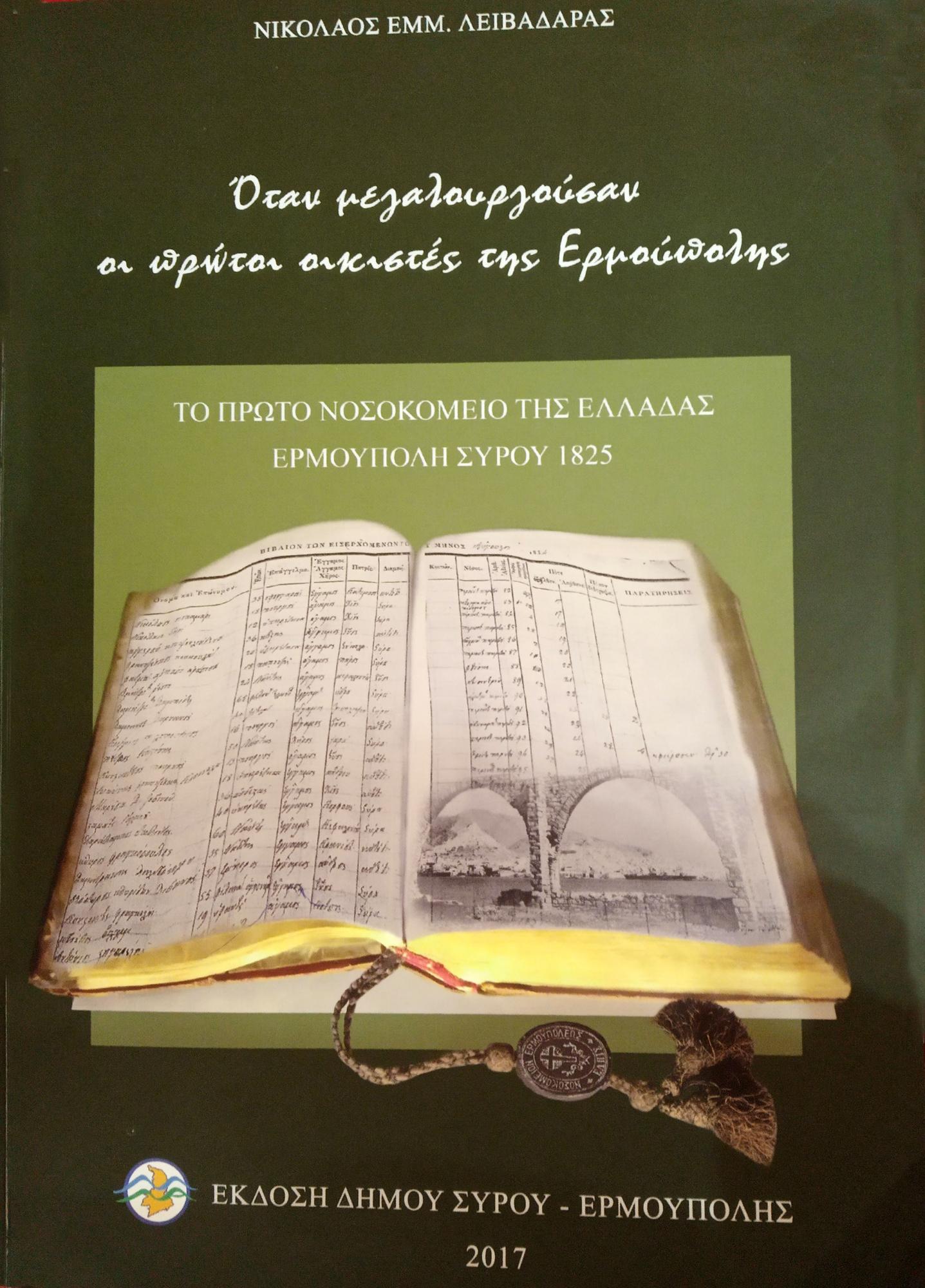 Η Σύρος τότε, με τους μεγαλεμπόρους πρόσφυγές της, θα προσφέρει την πρώτη θέση της υπηρεσίας στον Αγώνα με τη σύσταση και συστηματική λειτουργία του Πρώτου Οργανωμένου Νοσοκομείου της Ελλάδας. Η παρουσίαση της απαρχής ίδρυσής του, η οργάνωση, οι προσφερόμενες ιατρικές υπηρεσίες, η λεπτομερής καταγραφή ασθενειών κ.α. δίνουν πρόσθετα στοιχεία όσον αφορά την Ιστορία και την εξέλιξη της Ιατρικής στην νεότερη Ελλάδα... Η ίδρυση του Νοσοκομείου της Σύρου χρονολογείται από το έτος 1823, σύμφωνα με τις ενδιαφέρουσες καταγραμμένες μαρτυρίες του Ελβετού φιλέλληνα Louis – Andre Cosse, σε ένα γραπτό του κείμενο, κατά την περίοδο 1827-1828, ο οποίος παρέμεινε στη Σύρο ως εκπρόσωπος του ναυάρχου Κόχραν στα νησιά του Αιγαίου...”