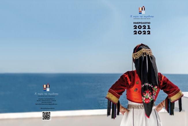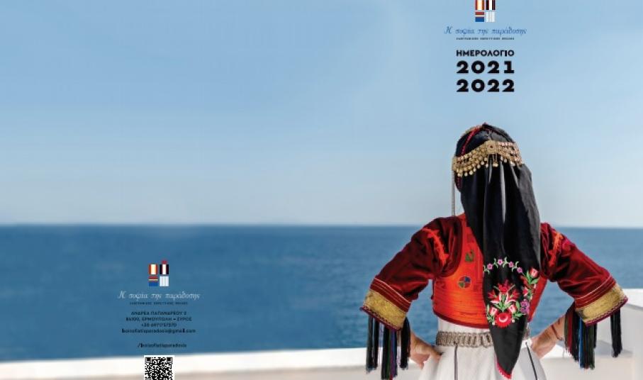 Η παράδοση και η κληρονομιά μας. Το λόγια τα οικεία, τα καθημερινά. Το παλιό, το αγνό, το όμορφα σφιχταγκαλιασμένο με το όνειρο, με τη νιότη. Το ημερολόγιο της «σοφίας της παράδοσης» περιλαμβάνει πλούσιο φωτογραφικό υλικό με παραδοσιακές φορεσιές από όλη την Ελλάδα (Κυκλάδες, Ιόνιο, Θεσσαλονίκη, Μακεδονία, Ήπειρο) και πληροφορίες για τη Συριανή ενδυμασία από τον 18ο έως τον 20ο αιώνα από την Εκπαιδευτικό, Διδάκτορα Ιστορίας και Πολιτισμού και Επίτιμο Σχολικό Σύμβουλο Π. Α., Δρ. Ελπίδα Πρίντεζη-Καμπέλη.