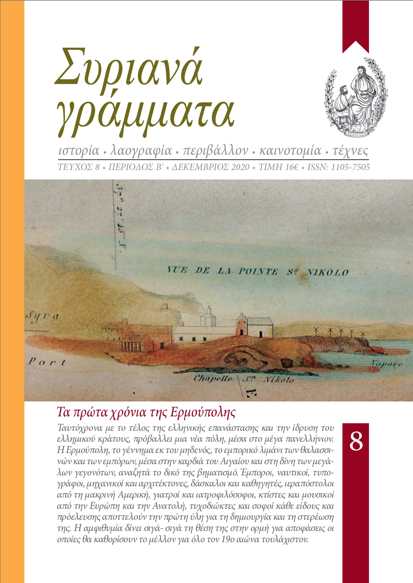 Το 8ο τεύχος της Β’ περιόδου του -βραβευμένου από το Υπουργείο Πολιτισμού- λογοτεχνικού περιοδικού (Δεκέμβριος 2020) είναι εξ’ ολοκλήρου αφιερωμένο στα Πρώτα Χρόνια της Ερμούπολης.