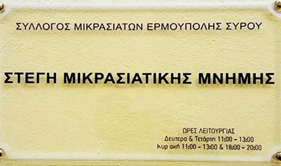 «Σύντομα θα συμπληρωθούν 100 χρόνια από το βίαιο ξεριζωμό των προγόνων μας από τις Πατρογονικές τους εστίες. Είναι χρέος όλων μας στην από καταβολής προσφυγούπολη Ερμούπολη, η Στέγη Μικρασιατικής Μνήμης να αποτελέσει φάρο πολιτισμού σε ένα χώρο αντάξιο της ιστορικής διαδρομής και της πολιτισμικής κληρονομιάς των προγόνων μας», αναφέρει χαρακτηριστικά το Δ.Σ. του Συλλόγου.