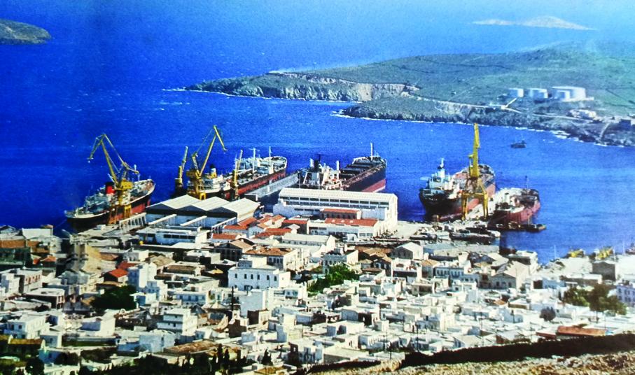 Με την πετυχημένη δράση της Ελληνικής Ατμοπλοΐας συμβαδίζει και η ανάπτυξη των ναυπηγείων. Σ' αυτά τα ναυπηγεία, οι “εξωγήινοι” οικιστές, χωρίς να πάρουν τίποτε από το ανύπαρκτο άλλωστε τότε κράτος, δούλεψαν σαν εργατικές μέλισσες και κατάφεραν το θαύμα!