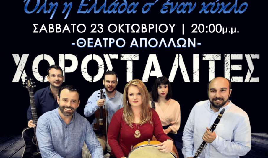 Ο Λαογραφικός Χορευτικός Όμιλος «η σοφία της παράδοσης» παρουσιάζει το Σάββατο 23 Οκτωβρίου 2021 στο Θέατρο Απόλλων την μουσική παράσταση «Όλη η Ελλάδα σ’ έναν κύκλο» της ορχήστρας παραδοσιακής μουσικής «Χοροσταλίτες».