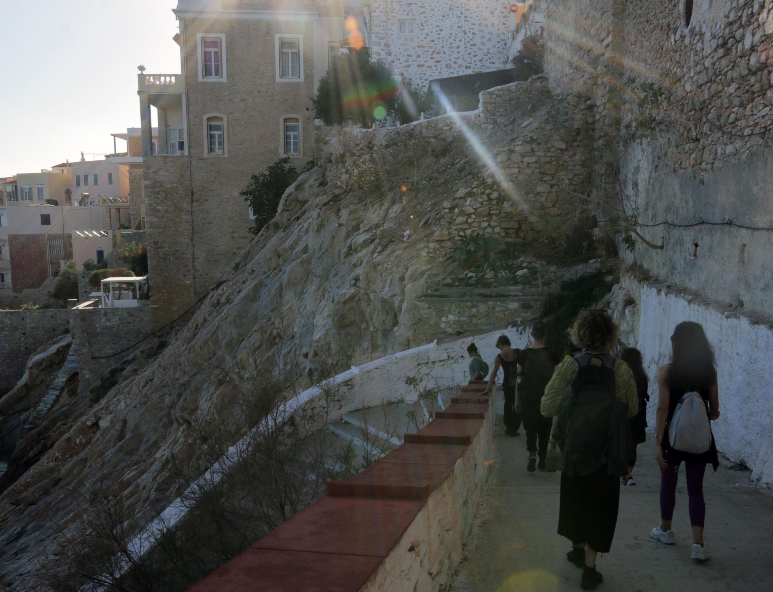 Ανοιχτή παρουσίαση της έρευνας που έγινε στο πλαίσιο του Προγράμματος Καλλιτεχνικής Κατοικίας του Κέντρου Χορού και Παραστατικών Τεχνών Ακροποδητί, κατά την περίοδο 1-7 Νοεμβρίου, στην περιοχή Βαπόρια της Σύρου. Μέσα από την προσγείωση σε έναν τόπο και τη σχέση της αίσθησης με τη μνήμη, η κίνηση γίνεται το μέσο επανιστόρησης του εαυτού και του τόπου στο παρόν.