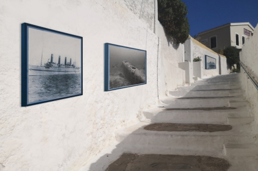 Για να φτάσει κανείς στο Κέντρο Κοινότητας του νησιού διασχίζει ένα κατάλευκο σοκάκι με χαμηλά σκαλιά. Στη διαδρομή αυτή θα τοποθετηθούν κατά μήκος του λευκού τοίχου 5 κορνίζες αυτοφωτιζόμενες με LED (Lightboxes), διαστάσεων 100 Χ 80 εκ, με φωτογραφίες από τα ναυάγια της Κέας. Φτάνοντας στον προαύλιο χώρο του Κέντρου Κοινότητας, θα υπάρχουν άλλες πέντε κορνίζες ίδιων χαρακτηριστικών. Επίσης, εκεί σε ψηφιακή οθόνη θα προβάλλονται βίντεο από τις καταδυτικές αποστολές.