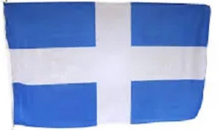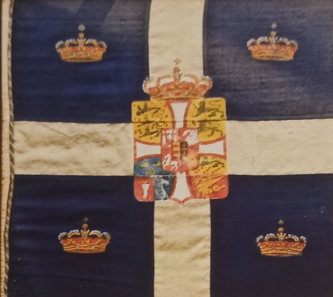 Με μια απλή τελετή και με λίγους προσκεκλημένους, εξ αιτίας της υγειονομικής κατάστασης της εποχής μας, δημιουργήθηκε η ομαδική έκθεση με θέμα την ελληνική σημαία που πρωτοπαρουσιάστηκε στην Ιερά Μονή Ευαγγελισμού της Θεοτόκου, στη Σκιάθο. Πρωτοδημιουργήθηκε και παρουσιάστηκε σ’ αυτό το νησί το 1807. Εκεί σχεδιάστηκε , υφάνθηκε και υψώθηκε η πρώτη γαλανόλευκη σημαία στις αρχές της επανάστασης. Εκεί είχε καταφύγει το 1807 ο Νικοτσάρας, ένδοξος αρχηγός κλεφτών από τη Θεσσαλία. Μαζί με τον περίφημο καπετάνιο Γιάννη Σταθά, είχαν επιλέξει τη Σκιάθο ως ορμητήριο για τον μικρό πειρατικό στόλο τους. Αυτοί οι δύο άνθρωποι, ο Σταθάς κι ο Νικοτσάρας, σε μια μυστική συνεργασία με τον πρώτο Ηγούμενο της Μονής, τον Όσιο Νήφωνα (1809) σχεδίασαν, έφτιαξαν και ύψωσαν την πρώτη ελληνική σημαία το γαλάζιο βάθος και τον λευκό σταυρό. Θεωρούσαν ότι αυτή η σημαία ήταν του πελάγους, εφόσον ήταν και είναι τόσο μεγάλο το ελληνικό πέλαγος. Αυτό το πέλαγος έχει υποδεχθεί τόσα νησιά. Αυτή η πελαγίσια σημαία με την πολύ απλή σχεδίαση του ουρανού (το λευκό) και της θάλασσας (το γαλάζιο), είναι η πρώτη που δημιουργήθηκε στην Ελλάδα. Αυτό το πρώτο συγκινητικό αυτοσχέδιο σύμβολο, ευλογήθηκε το Σεπτέμβριο του 1807, σε τελετή όπου εκεί είχε παρουσιαστεί και ο Θεόδωρος Κολοκοτρώνης, ο οποίος με ιδιαίτερη συγκίνηση υποδέχθηκε το σχέδιο της πρώτης ελληνικής σημαίας. Ήταν τόσοι πολλοί οι άνθρωποι εκείνης της εποχής , ιδιαίτερα από τη Σκιάθο και από τα άλλα νησιά, που ήταν σχεδόν... ελεύθερα από Τούρκους, που ενθουσιάστηκαν από την παρουσίαση, όσοι γνώριζαν τη σημαία με τον λευκό σταυρό σε γαλάζιο φόντο, που συμβόλιζε τη θάλασσα. Καθιερώθηκε ως εθνική σημαία των πολεμικών πλοίων του ελληνικού κράτους στα 200 χρόνια της ύπαρξής της. Ήταν και είναι επίσημη, η μικρή σημαία που θαυμάζεται στην περιοχή της πλώρης του πλοίου, όταν είναι αγκυροβολημένο. Στο Ναυτικό Μουσείο της Ελλάδας μαζί με έργα καλλιτεχνών της έκθεσης παρουσιάζονται, αυτή την εποχή, 11 σημαίες με συμβολική εικόνα μεγάλης ιστορικής αξίας από σπουδαία πλοία και προσωπικότητες του νεότερου και σύγχρονου ελληνικού Πολεμικού Ναυτικού.