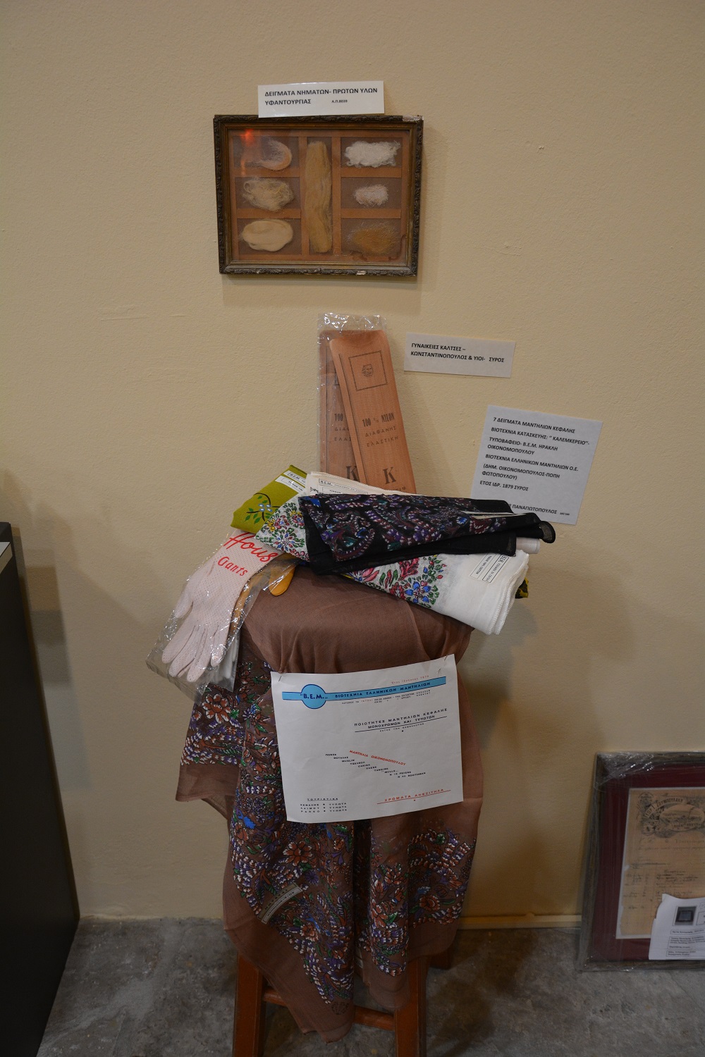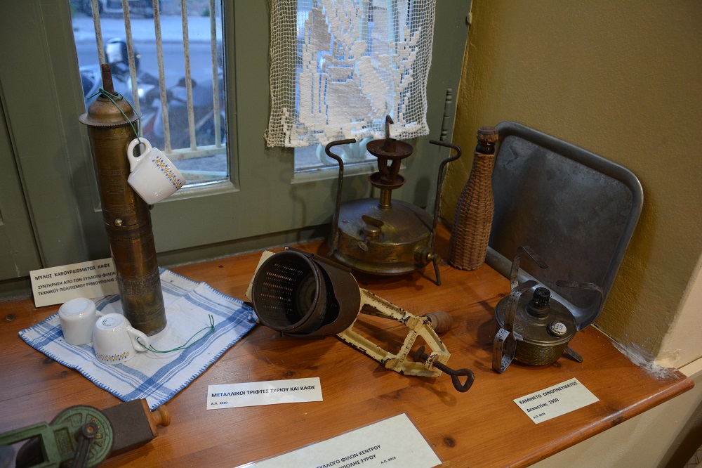 Στην έκθεση μπορεί κανείς να θαυμάσει αντικείμενα από παλιά νοικοκυριά από σπίτια, από εργαστήρια, σχολές, από παλιά εργοστάσια. Υφάσματα, κεντήματα, ψυγεία πάγου, τηλέφωνα, πιάτα και ποτήρια, καμινέτα, γκαζιέρες, γραφομηχανές, όργανα ναυσιπλοΐας, φωτογραφικές και κινηματογραφικές μηχανές αλλά και πολλές μικρές και μεγάλες εκπλήξεις. Σε κάθε γωνιά της έκθεσης ο επισκέπτης κάνει ένα ταξίδι στο χρόνο και μια σύντομη αναδρομή στο παρελθόν. Οι νεότεροι θα έρθουν για πρώτη φορά σε επαφή με αντικείμενα που έχουν δει μόνο σε ασπρόμαυρες φωτογραφίες και οι παλαιότεροι θα νοσταλγήσουν και θα ξαναζήσουν εικόνες από την παιδική τους ηλικία. Όλα τα εκθέματα έχουν καταγωγή από Σύρο και προέρχονται από δωρεές και προσφορές ιδιωτών, επιχειρήσεων και φορέων του νησιού. Δίπλα στο κάθε έκθεμα υπάρχουν πληροφορίες για την ταυτότητα και την προέλευσή του, δίνοντας στον επισκέπτη όλες τις πληροφορίες που χρειάζεται. Στην είσοδο της έκθεσης υπάρχει πίνακας με όλα τα ονόματα των δωρητών που μέχρι στιγμής είναι πάνω από εκατό.