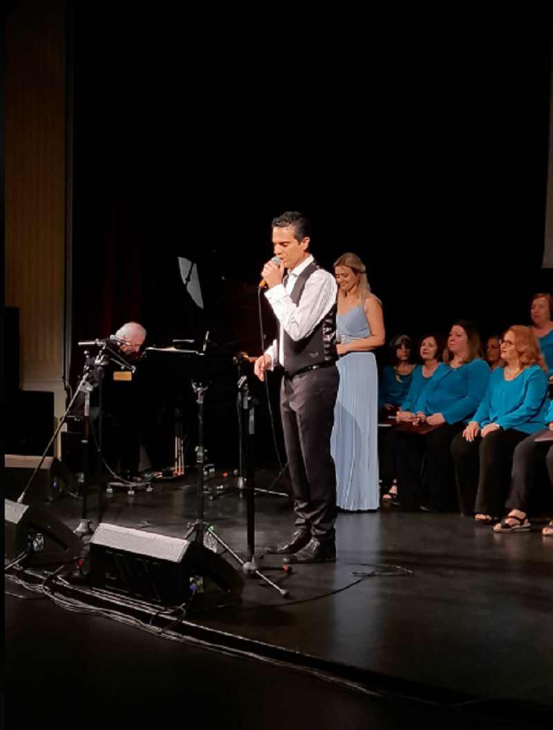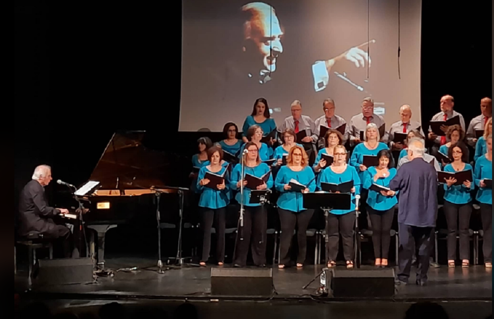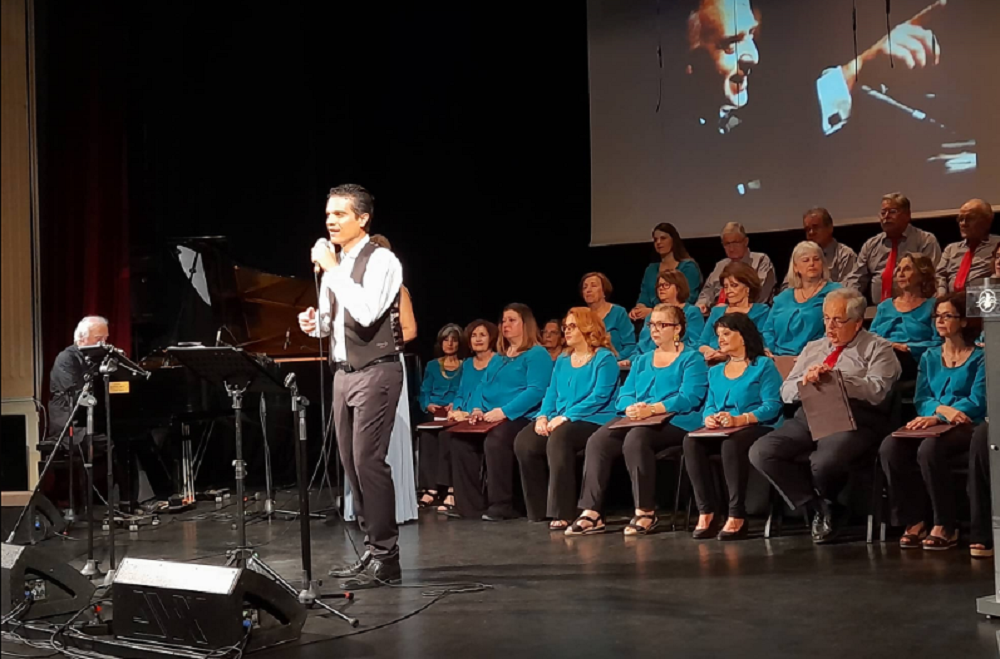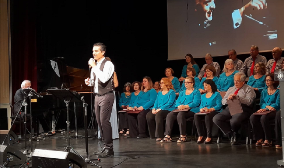 Λίγο αργότερα, o κ. Αργυρίου κάλεσε στη σκηνή τον Γιώργο Χατζηνάσιο ο οποίος ανέβηκε καταχειροκροτούμενος κι αφότου υποκλίθηκε και χαιρέτησε το κοινό, έκατσε στο πιάνο του. «Είμαστε εδώ, οι συνεργάτες μου κι εγώ, για να σας προσφέρουμε μια ευχάριστη μουσική βραδιά. Χίλια ευχαριστώ στον υπέροχο μαέστρο , τον Γιάννη Αργυρίου, ο οποίος από πολύ νωρίς μας είχε προετοιμάσει για να γίνει αυτή η συναυλία. Ήρθε η στιγμή. Η χορωδία αγάπησε τα κομμάτια μου κι εγώ ενθουσιάστηκα χθες με την πρόβα που κάναμε» είπε ο συνθέτης λίγο πριν ξεκινήσει το μουσικό πρόγραμμα.