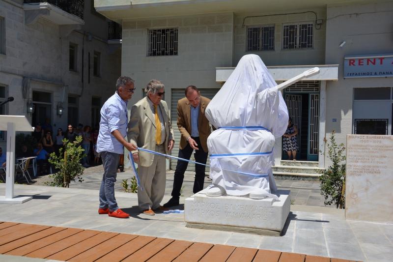 Στην πλατεία Παπάγου, στο λιμάνι της Ερμούπολης, ο ανδριάντας του Μάρκου Βαμβακάρη, έστεκε υπομονετικά από την προηγούμενη εβδομάδα περιμένοντας να ξεσκεπαστεί και να αντικρίσει ξανά το νησί που τόσο αγάπησε αλλά και τους κατοίκους του που τόσο τον αγάπησαν. Σε μια μικρή -σε σχέση με το μέγεθος του Μάρκου- εκδήλωση, έγιναν τα αποκαλυπτήρια του αγάλματος που φιλοτέχνησε ο γλύπτης Πέτρος Γεωργαρίου και δώρισε στο νησί ο γιος του Μάρκου, Βασίλης Βαμβακάρης.