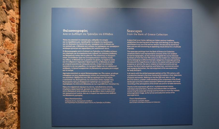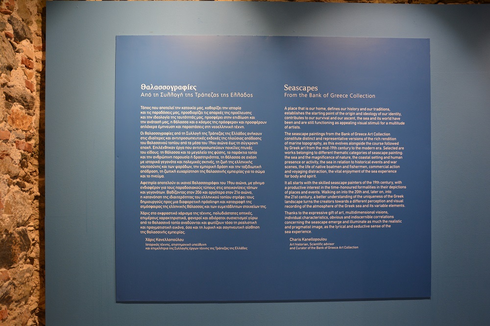 Αμέσως μετά την ομιλία του κ. Στουρνάρα, οι παρευρισκόμενοι περιηγήθηκαν στους χώρους της Πινακοθήκης Κυκλάδων ενώ η επιστημονική υπεύθυνη κι επιμελήτρια της συλλογής έργων τέχνης της Τράπεζας της Ελλάδος, κα Χάρις Κανελλοπούλου, ξενάγησε τους επισήμους στα έργα της έκθεσης. “Η έκθεση ‘Θαλασσογραφίες’ είναι μια έκθεση που είναι αφιερωμένη στη θάλασσα και στις διαφορετικές πτυχές που ενεργοποίησαν το ενδιαφέρον των Ελλήνων ζωγράφων από τα μέσα του 19ου αιώνα ως τη σύγχρονη εποχή ώστε να απεικονίσουν πολλές και διαφορετικές όψεις της . Παρουσιάζουμε 51 θαλασσογραφίες από τη συλλογή της ΤτΕ με διαφορετικά θέματα είτε αυτά αφορούν τη θάλασσα και το μεγαλείο της φύσης, είτε αφορούν το παράκτιο και το νησιωτικό τοπίο, τη θάλασσα και τα ιστορικά γεγονότα, τη λιμενογραφία, την πλοιογραφία, τη δραστηριότητα του ανθρώπου, την απόλαυση που αντλούμε από αυτήν με το σώμα και το πνεύμα” δήλωσε στην Κοινή Γνώμη η κα Κανελλοπούλου.