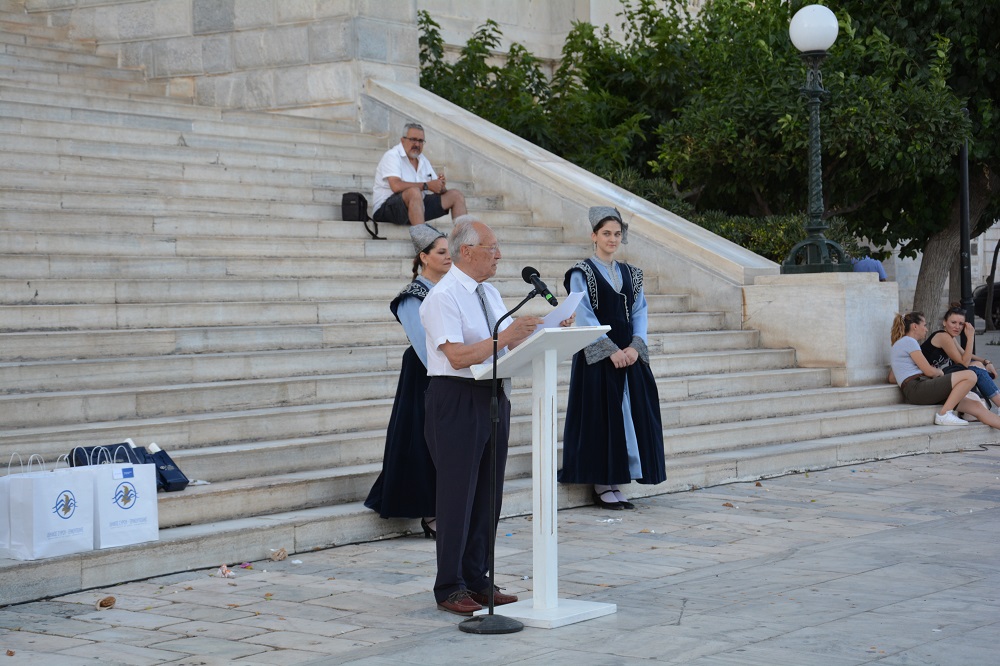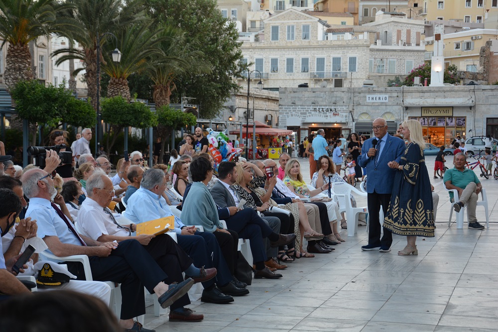 Το μικρόφωνο πήρε για λίγο και ο ιδρυτής κ. Παναγιώτης Τσάκος, για να ευχαριστήσει διοργανωτές και κοινό και αστειευόμενος για την καθυστέρηση της άφιξής του στην εκδήλωση είπε: “Είχα υποσχεθεί ότι θα είμαι στην ώρα μου αλλά όταν το υποσχέθηκα αυτό δεν ήξερα ότι έχετε τόσες ωραίες παραλίες εδώ στη Σύρο”.