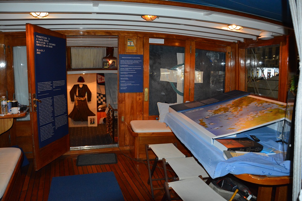 Εν συνεχεία και εκ μέρους του ιδρύματος Μαρία Τσάκος, απηύθυνε χαιρετισμό, ο πρόεδρος κ. Ευθύμιος Μητρόπουλος, ευχαριστώντας μεταξύ άλλων, το Εθνικό Ιστορικό Μουσείο για την πρόταση αυτής της συνεργασίας: “ Την πρόταση συνεργασίας που μας απηύθυνε το 2021 το Εθνικό Ιστορικό Μουσείο την αποδεχθήκαμε με ενθουσιασμό, εκτιμώντας την διπλά. Πρώτα γιατί απέβλεπε στην τίμηση του κατά θάλασσα Αγώνα όσα χρόνια διαρκούσε η Ελληνική Επανάσταση και παράλληλα γιατί, από τα πολλά υπάρχοντα και λειτουργούντα στη χώρα μας αξιολογότατα ιδρύματα , το μουσείο έχει επιλέξει το δικό μας για την πραγματοποίηση δύο έξοχων πρωτοβουλιών που μαζί αναλάβαμε. Την παραγωγή ενός λευκώματος υπό τον τίτλο “Ναυτικός Αγώνας του 1821” όπως και την οργάνωση της πλωτής έκθεσης”.