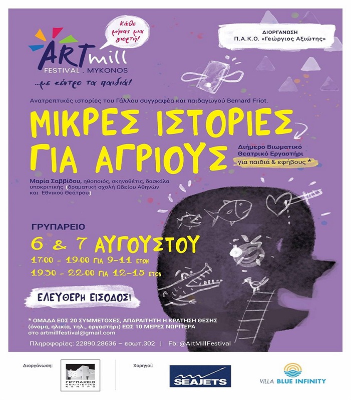Τελευταία καλοκαιρινή δράση του Artmill Festival για παιδιά κι εφήβους το διήμερο 6 & 7 Αυγούστου και οι θέσεις είναι ήδη περιορισμένες!